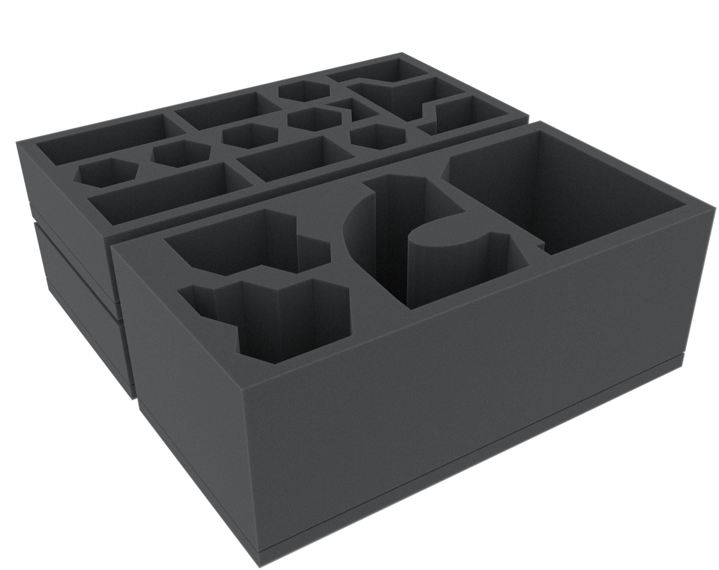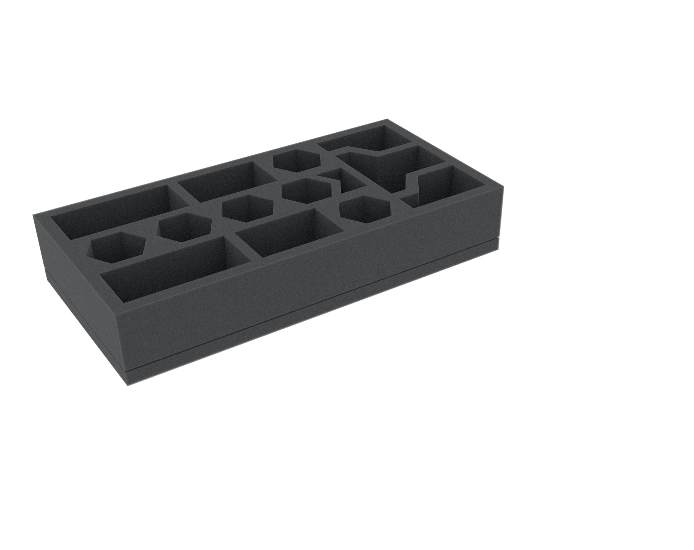 - 1 foam tray with 4 compartments for large miniatures like Riot, Proto Angelo, Elder Geryon Knight, Empusa Queen