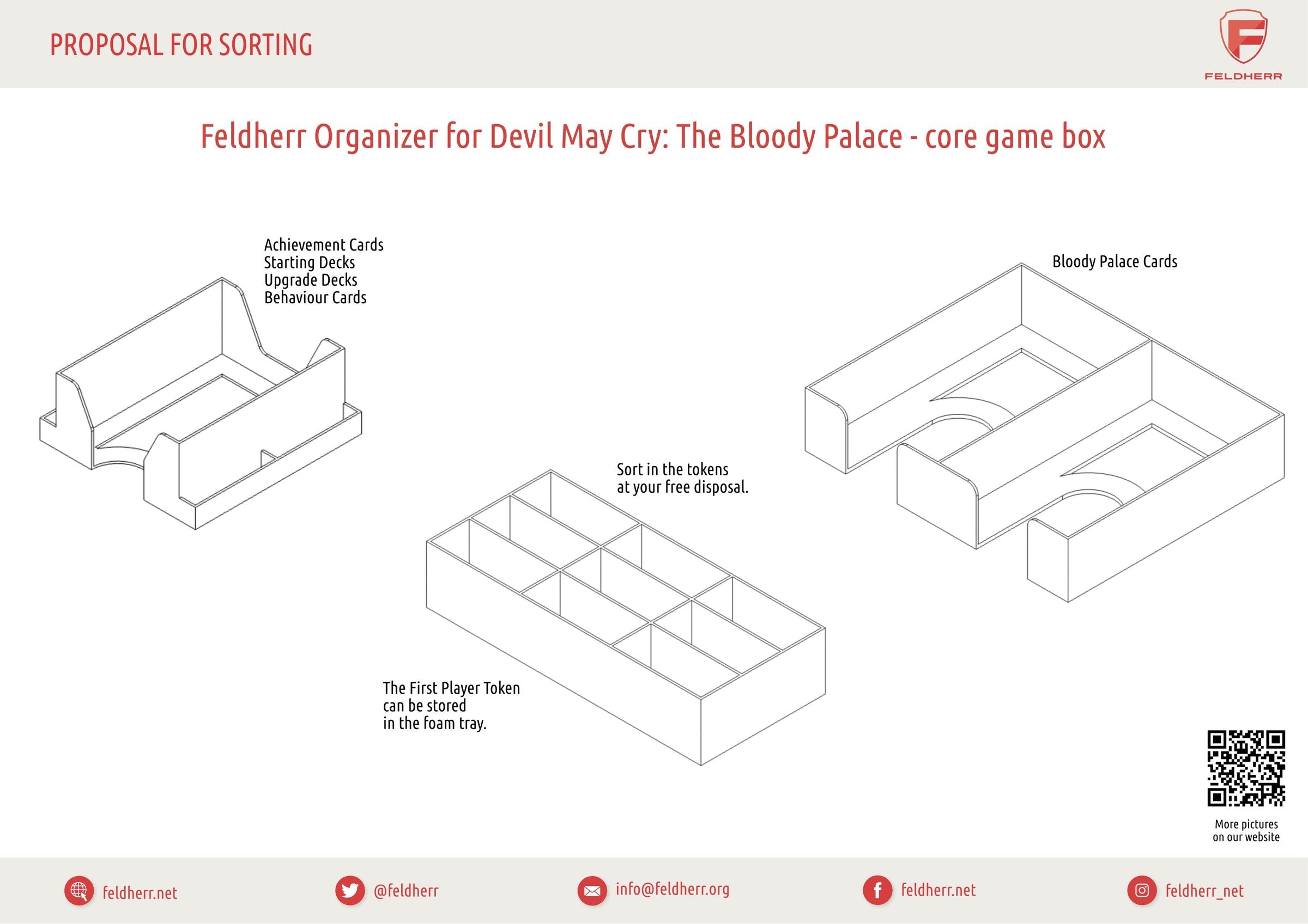 - The set fits neatly into the original board game box of the "Devil May Cry: The Bloody Palace" core game.