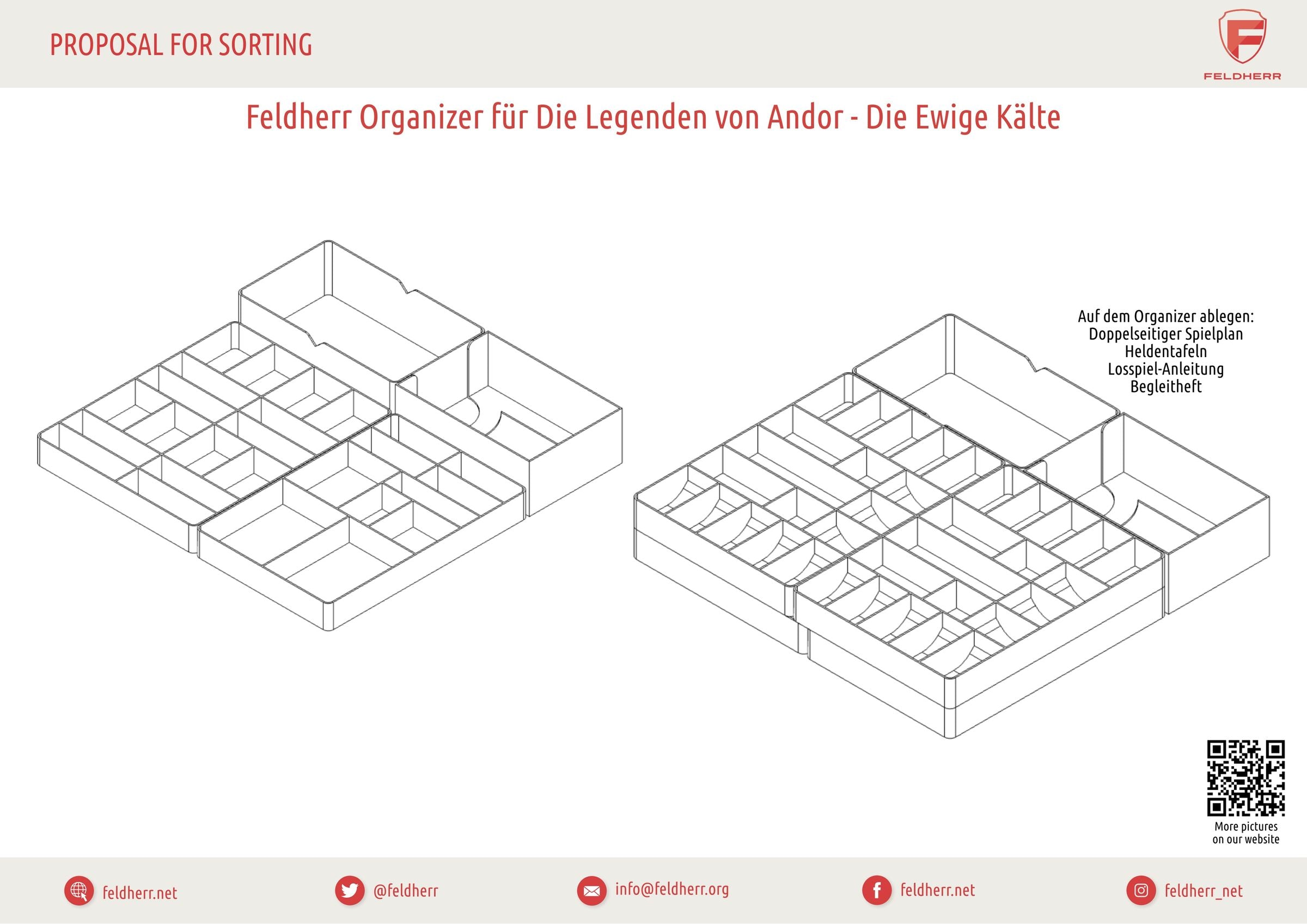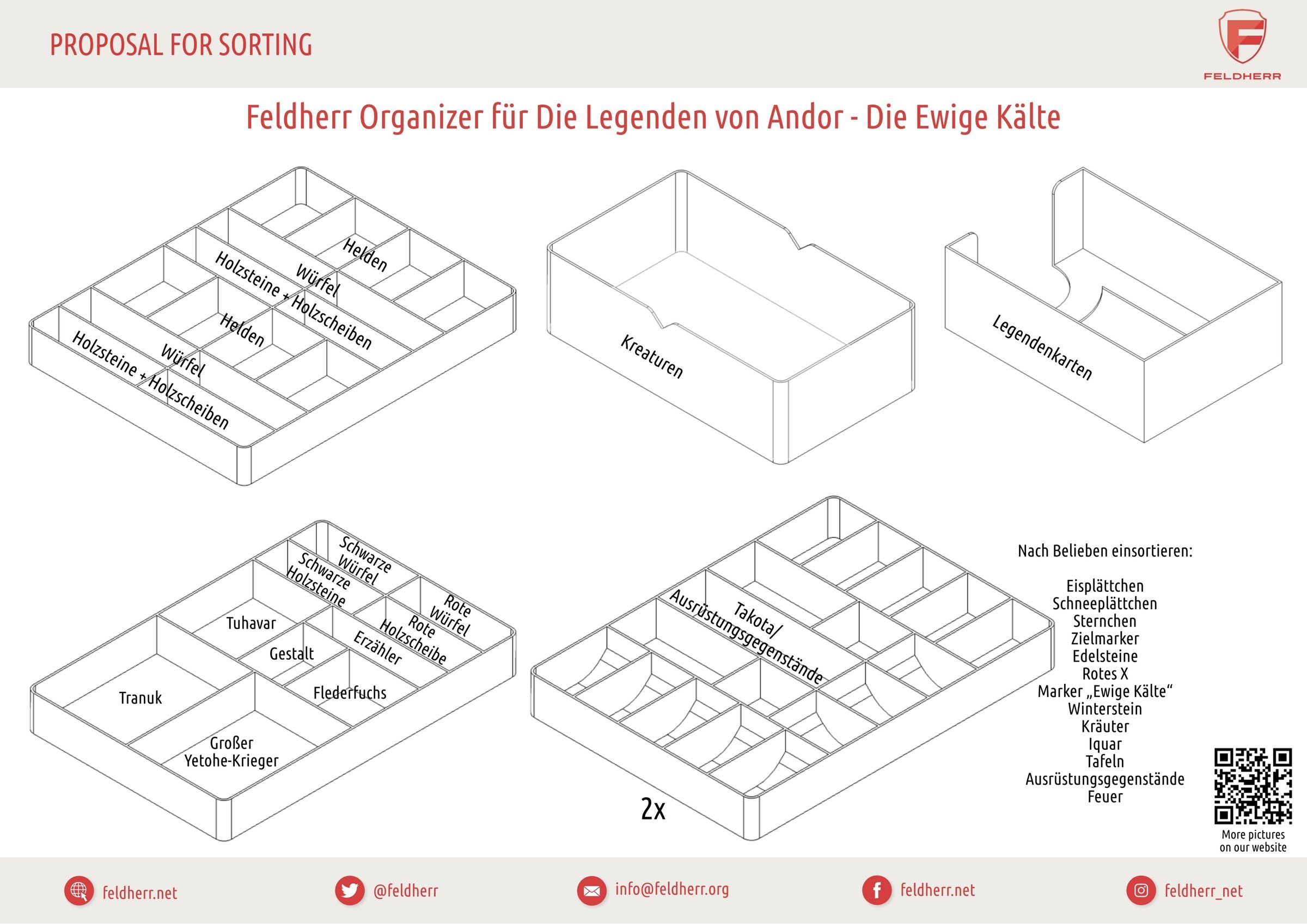 To prevent you from getting buried by an avalanche of tokens and game material even before the game starts, there is the matching Feldherr Organizer for your board game box. With it, you can keep your game material neatly sorted in the box and on the table. Once you arrange the tokens in the Organizer trays, you will save valuable time in the future and keep track of the game's contents at all times. This adds to the fun of the game.