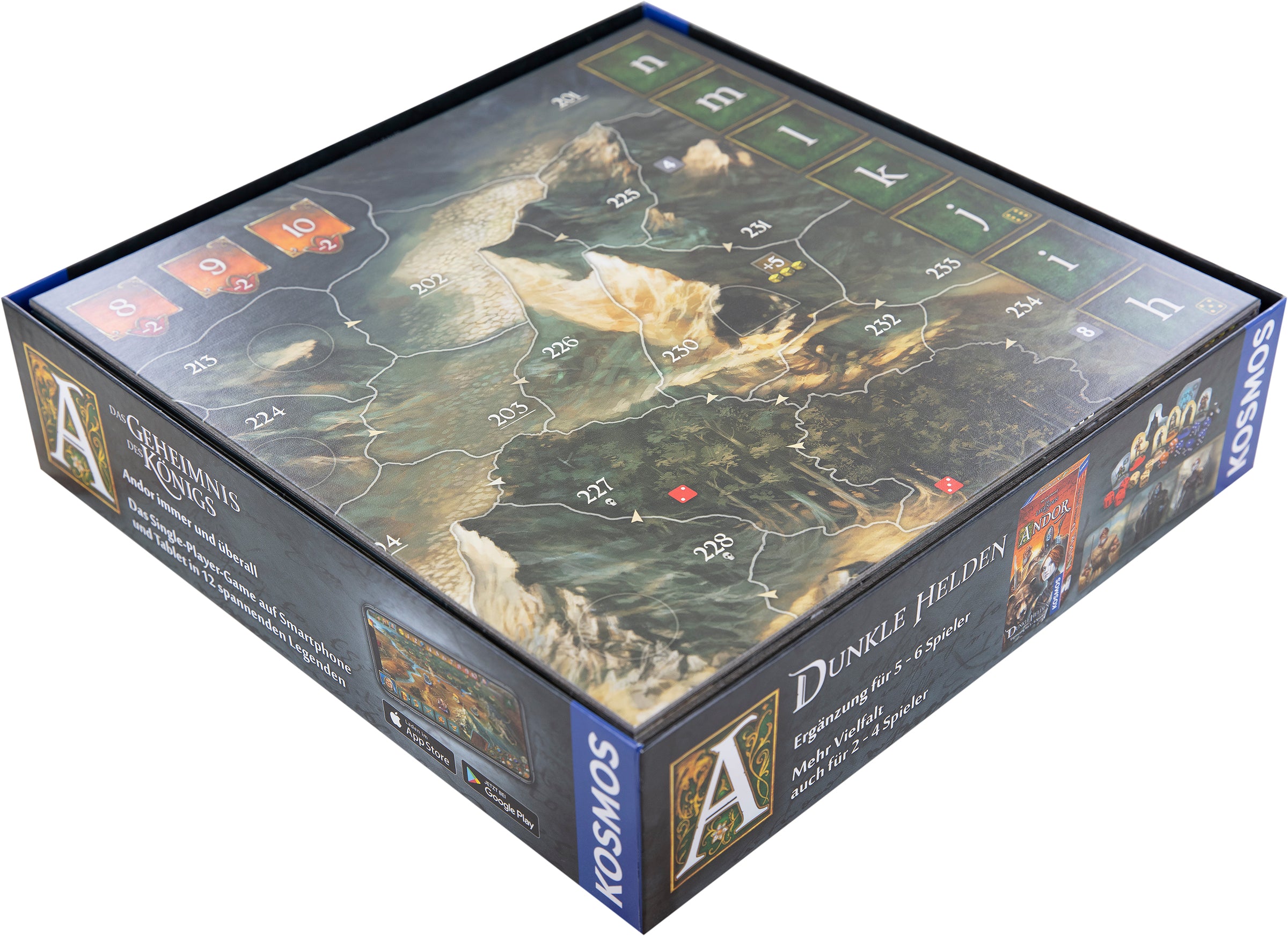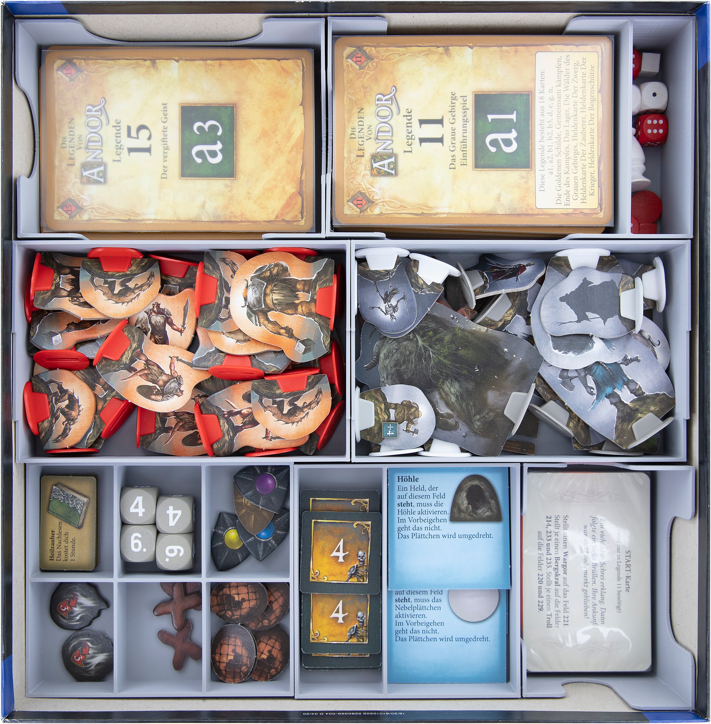 When the heroes return to Andor they find it desolate and pillaged. They embark on another journey to save the Andori. This big expansion does not need any components from the previous games and thus brings lots of components itself to the table. Once again our insert comes to the rescue and protects Andor from chaos.