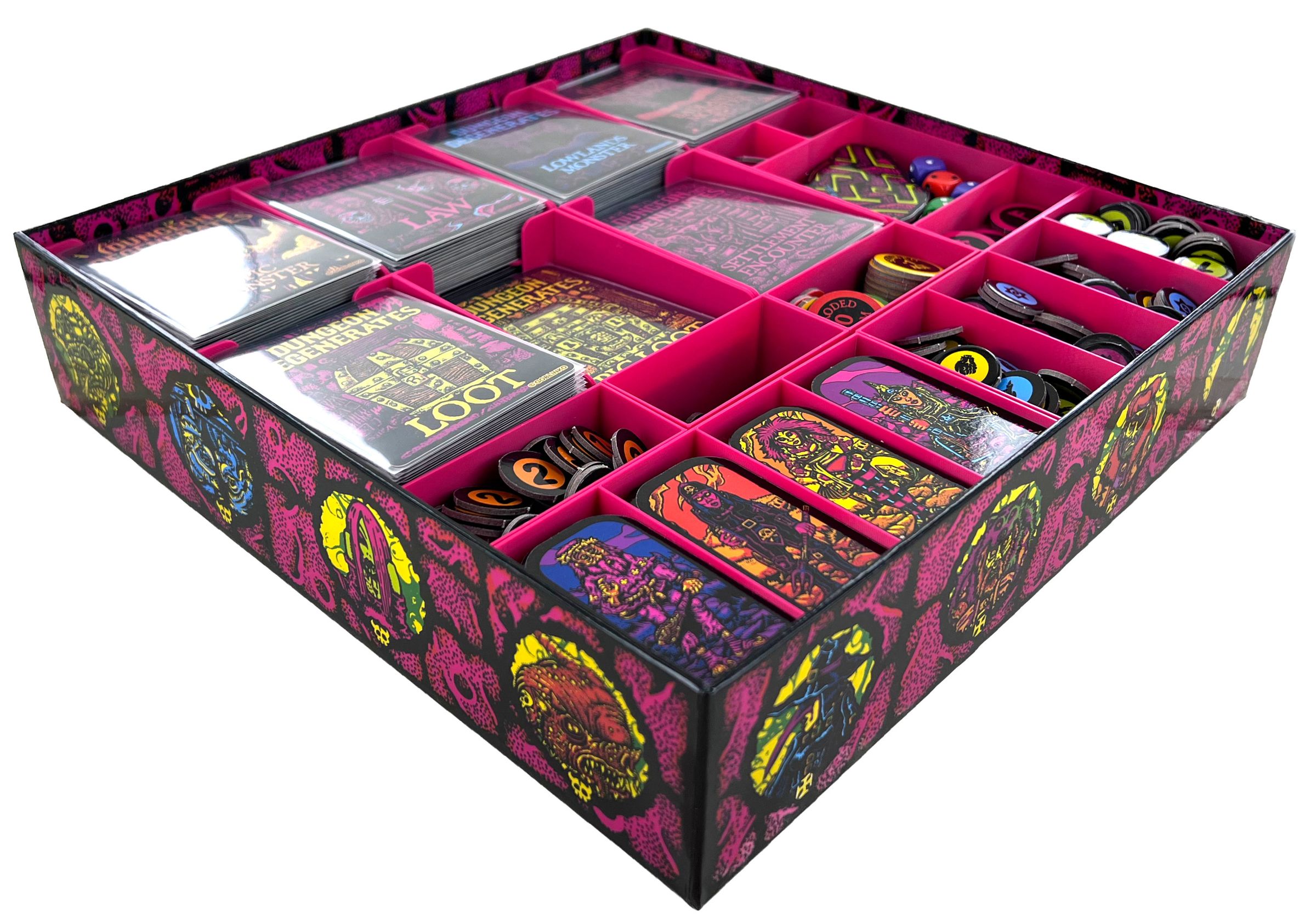 • The Organizer fits into the original board game box of the “Dungeon Degenerates: Hand of Doom” core game.
