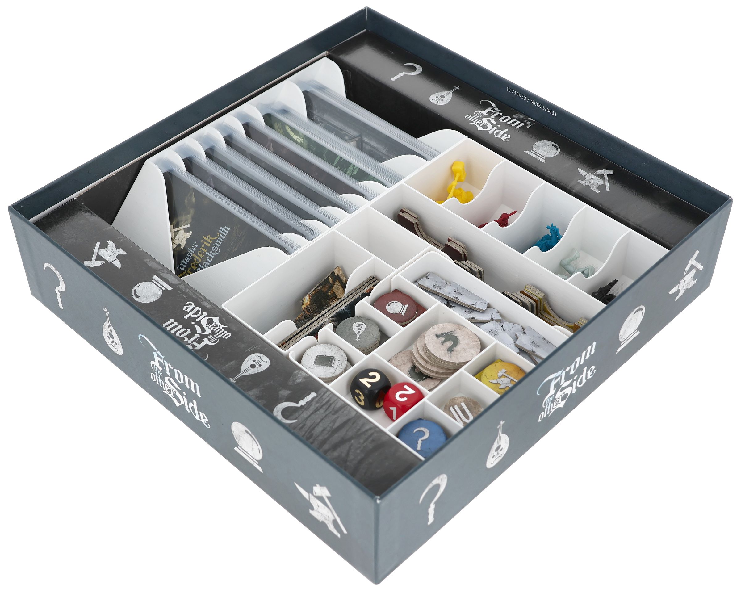 • The Organizer is made of sturdy plastic and fits perfectly into the original board game box from From The Other Side (Organizer dimensions: 285 x 206 x 51 mm).