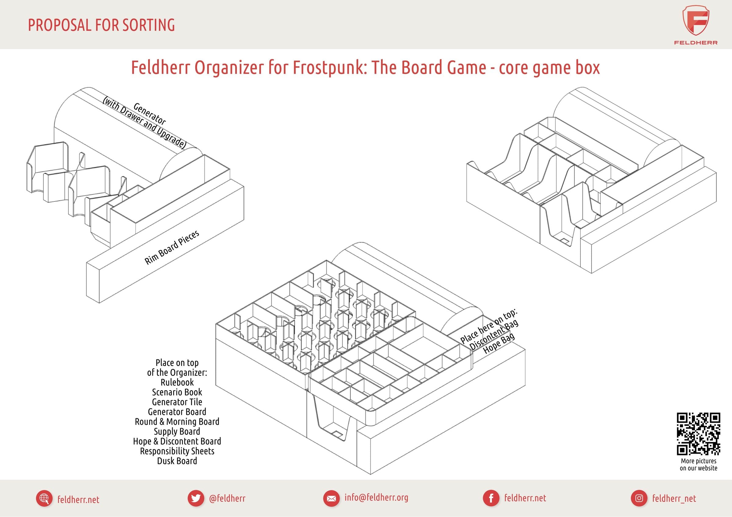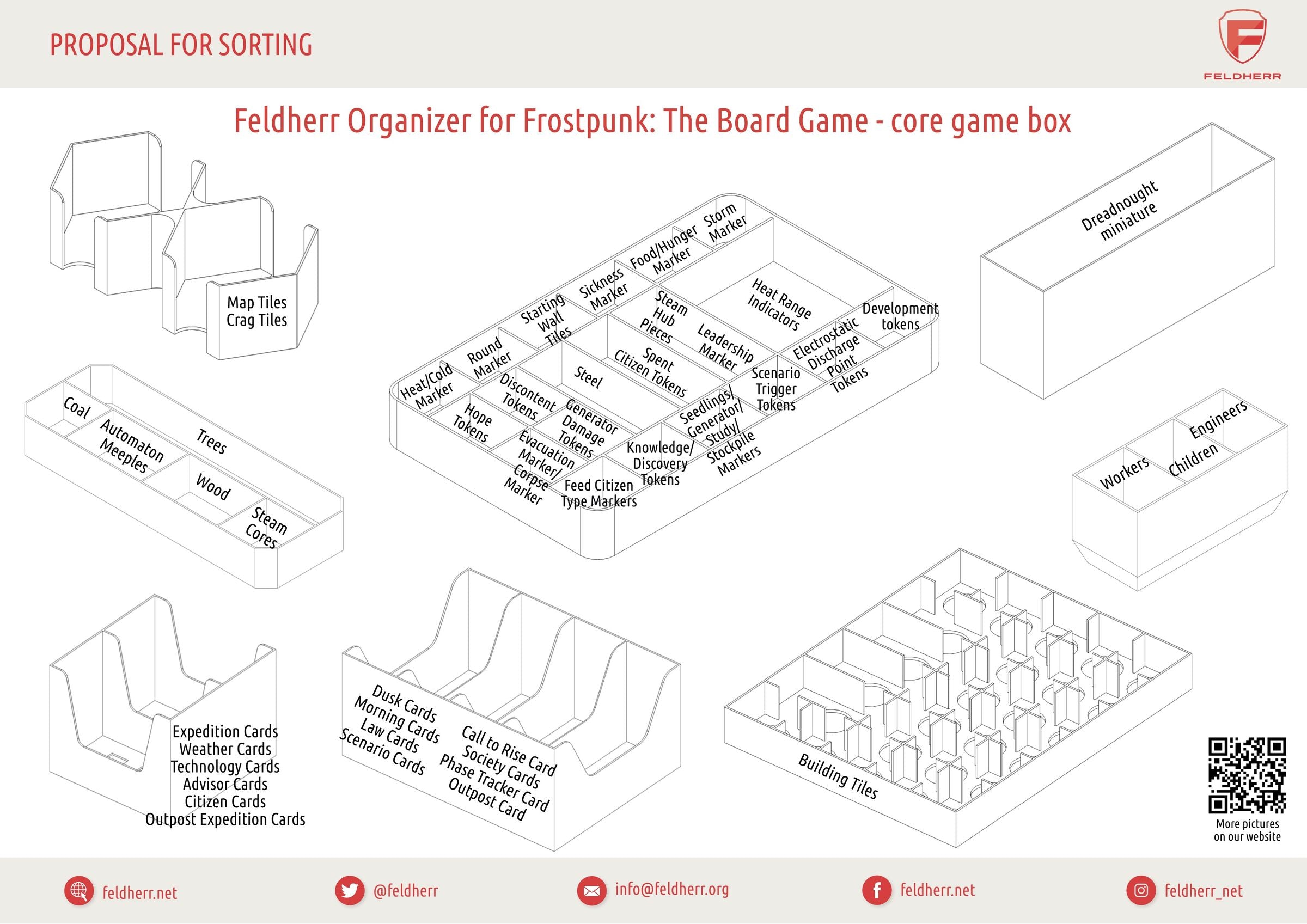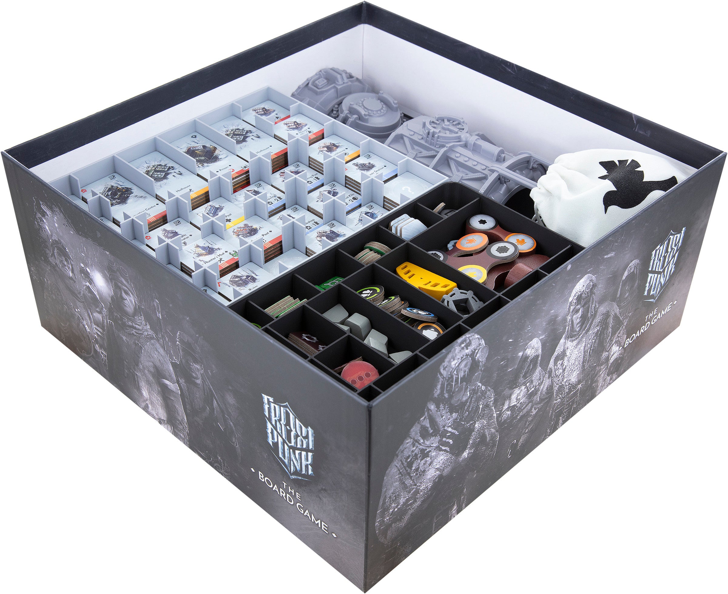 • The Organizer fits into the original “Frostpunk: The Board Game” core game box by 11 Bit Studios.