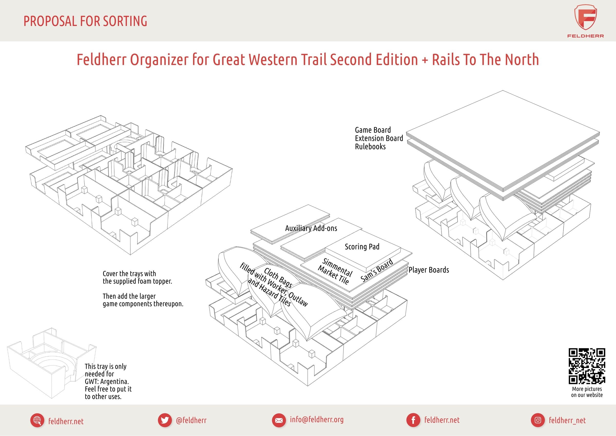 • For use with “Great Western Trail: Argentinien,” a red tray is included for storing the country and ship tiles.