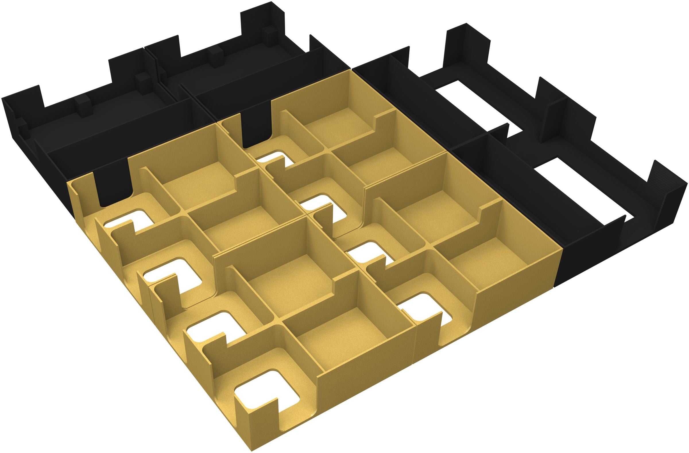 Save yourself time-consuming sorting and arranging tiles, cards, and accessories at the beginning of each game. With the Feldherr card and token holders, everything is now compactly stored and always where you need it. From the job market token to a fistful of dollars - every token, every tile, and card has its compartment. This simplifies sorting after the game.