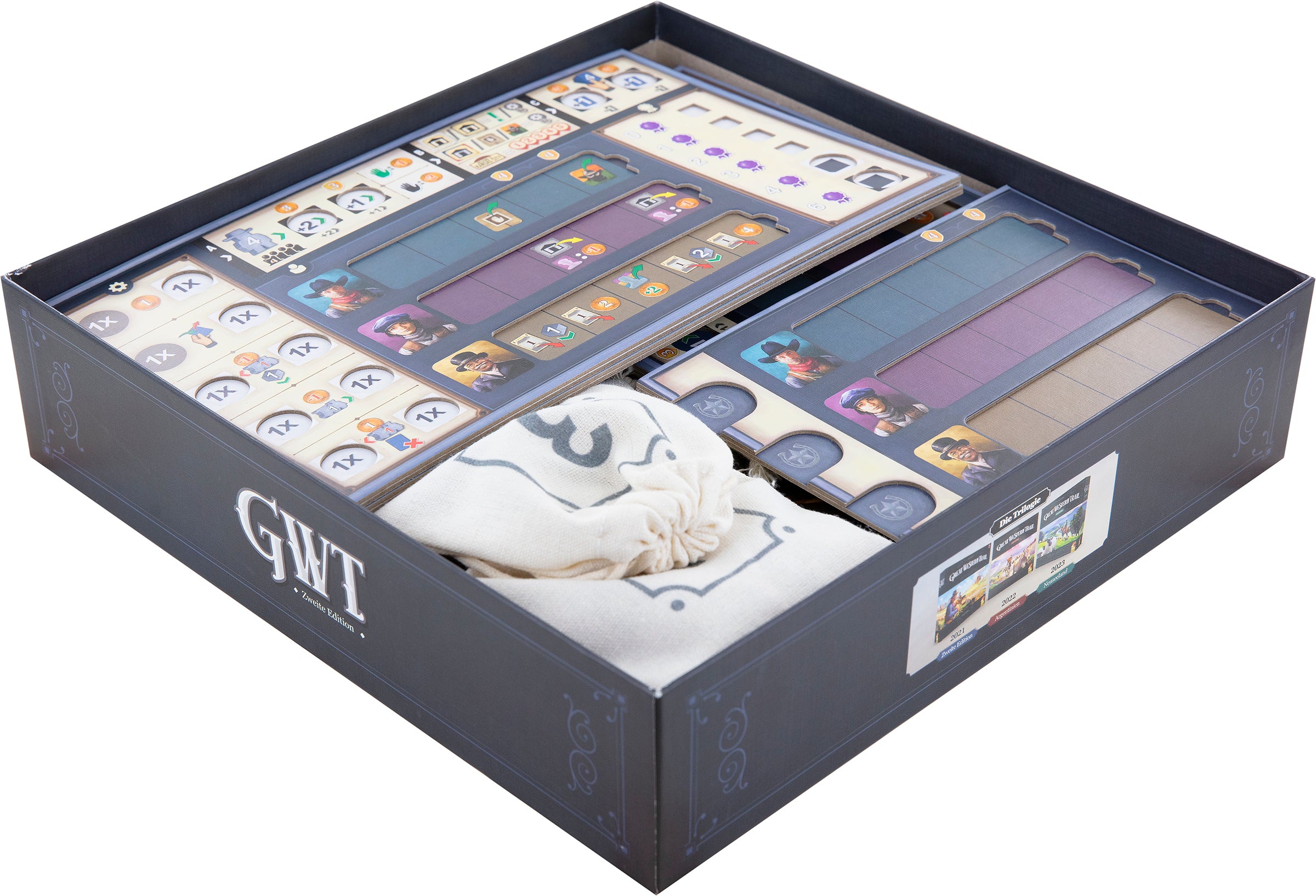 • The Organizer provides space for all game materials from the “Great Western Trail (Second Edition)” core game by eggertspiele.