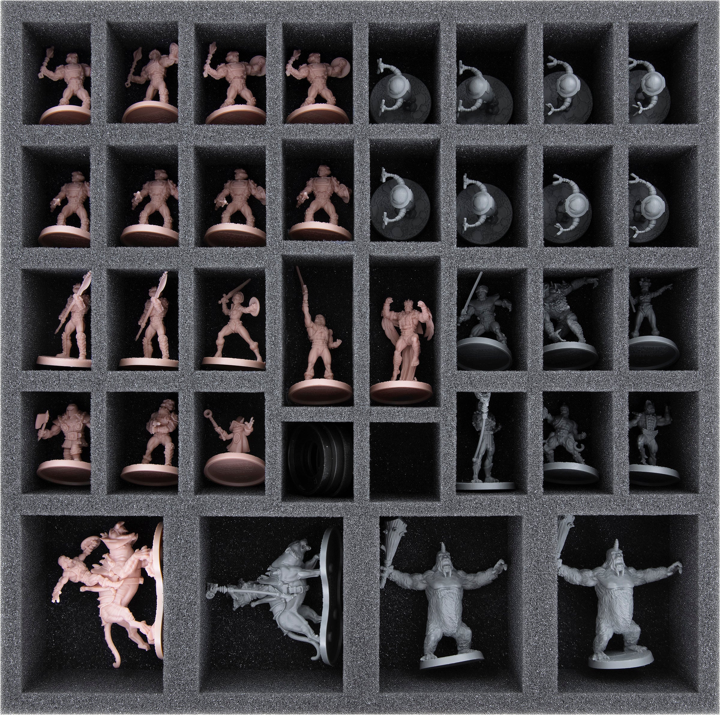While you fight for the control of Eternia, we ensure the protection of your miniatures and the organization in your board game box. The Feldherr foam tray offers custom-fit compartments for each miniature. Thanks to the custom-fit cut, they fit securely and don't slip. This ensures that delicate details are well-protected even during transport. The soft foam prevents painted models' colors from color abrasion or scratches.