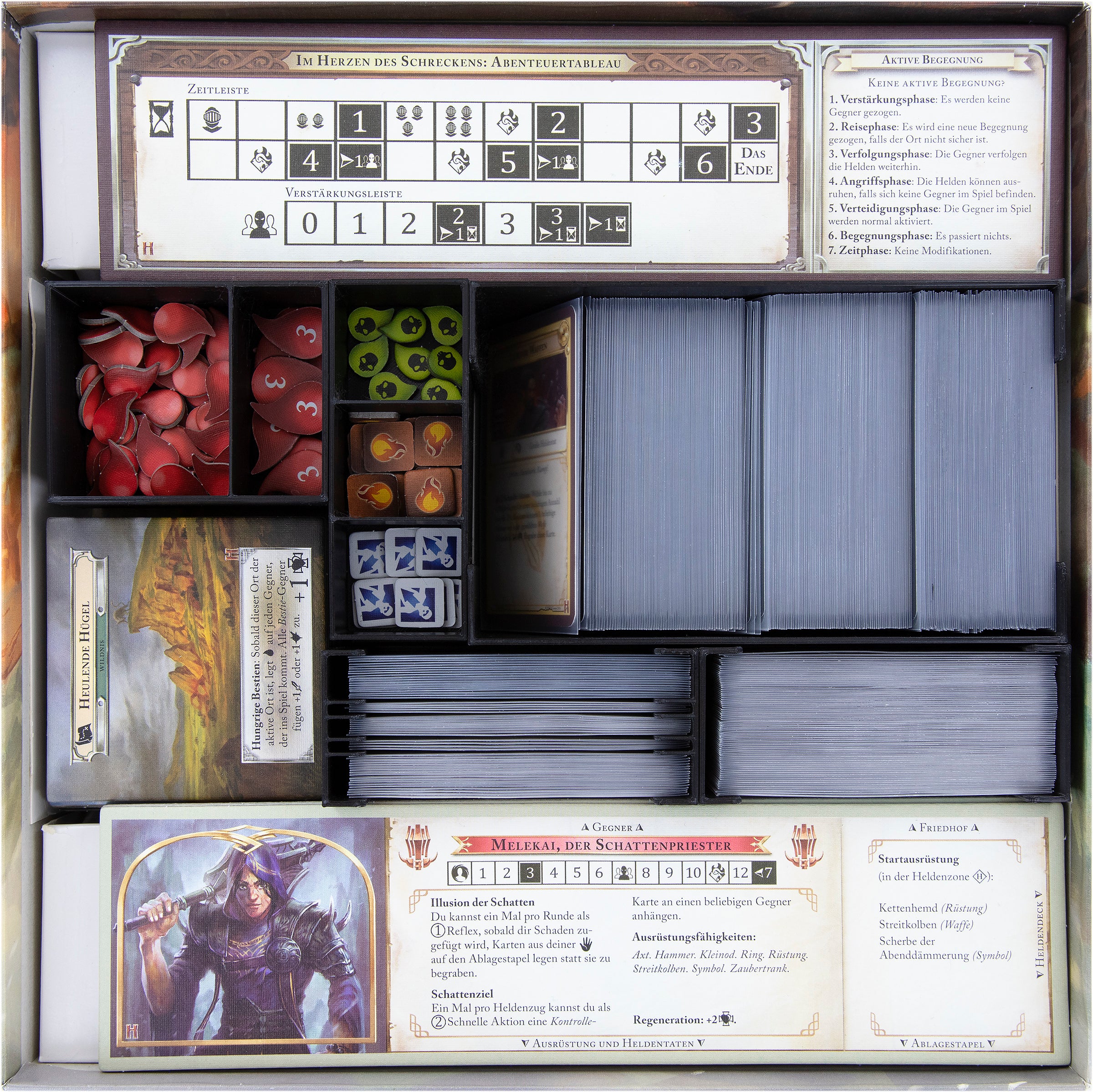 While you fight on the front line, we support you from the second row and keep order in your board game box. Thanks to the three plastic card and four plastic token holders in conjunction with the original cardboard insert, you always have your cards and game material under control. The clear structure of the Organizer saves you time-consuming pre-sorting. For a quick start to the game, take the individual plastic inserts out of the box and distribute them on the tabletop. That way, everything is where you need it. Cleaning up is no problem if you have to rest from your adventures. Just sort your game material into the appropriate trays and return them to the game box. This way, you are also directly prepared for your next session.