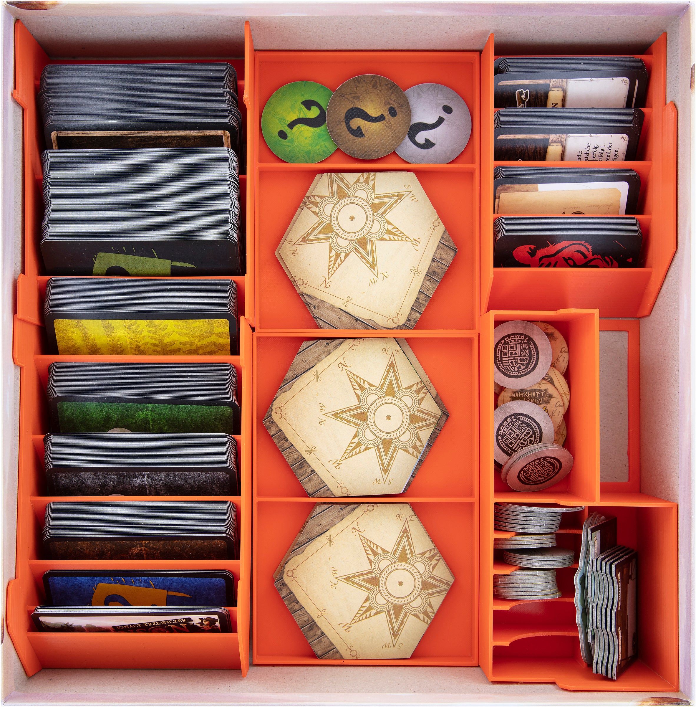• The insert made of sturdy plastic offers you space for all markers, cards, and tokens from the basic box and the expansion "The Voyage of the Beagle".