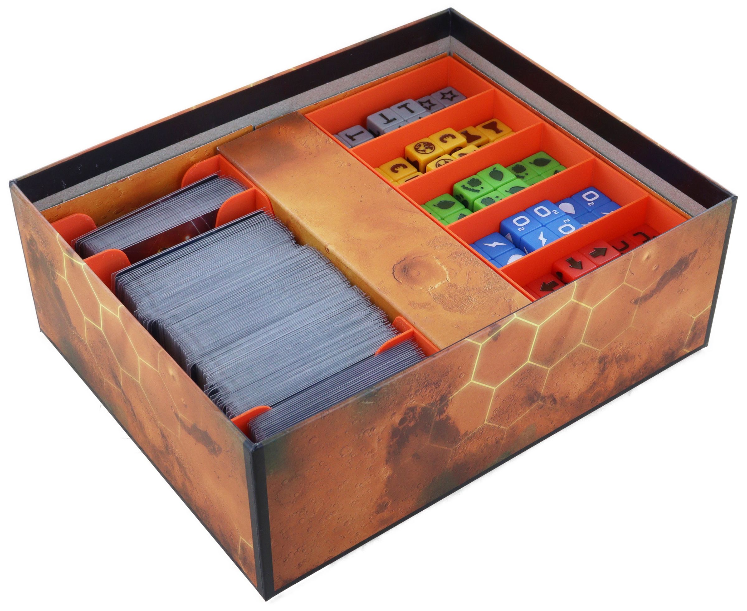 Embark on the journey of making the red planet habitable in Terraforming Mars: The Dice Game using cards and dice. To ensure disorganized cards or lost dice do not disrupt your game, we offer the perfect solution for you.