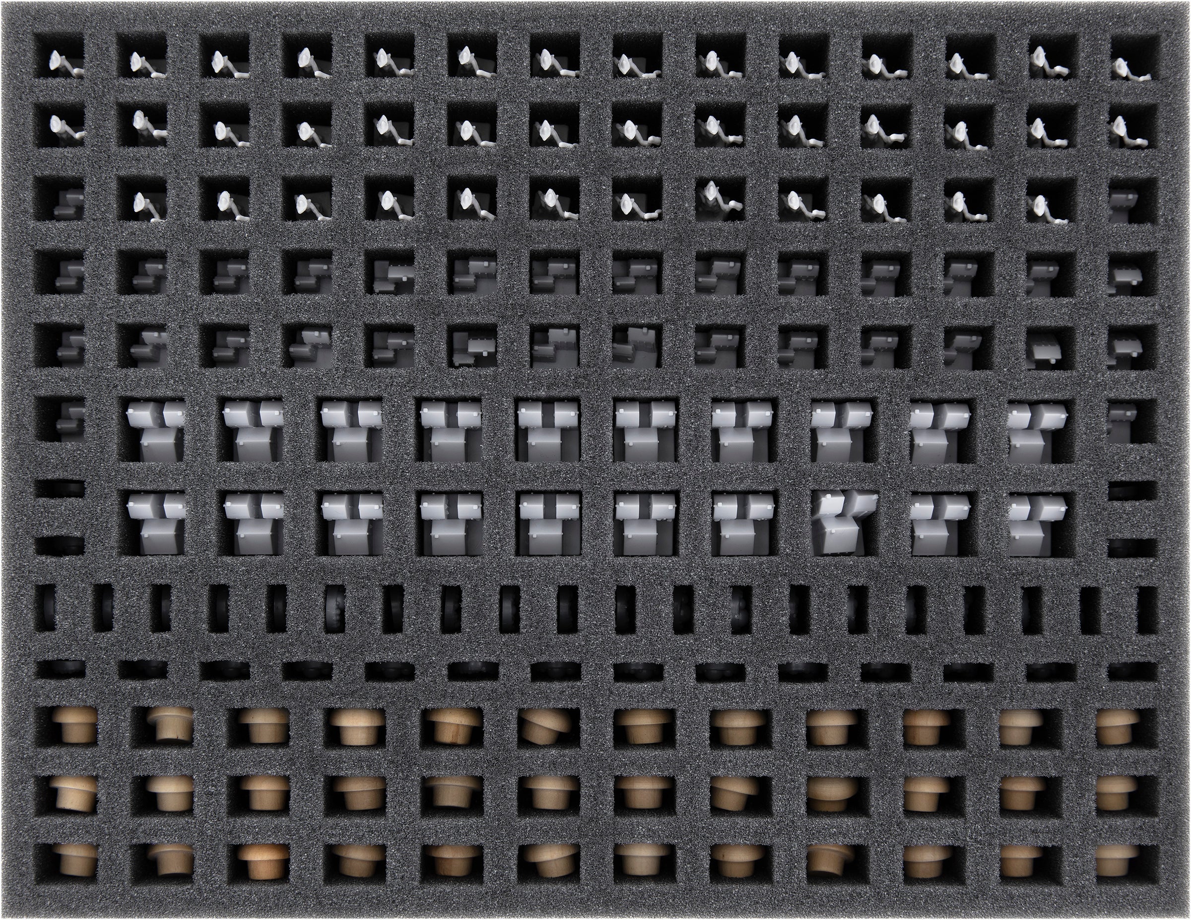 Whoever wants to add more color to his game and paint the miniatures is well advised with this Feldherr Organizer in the special "Painters Edition". The set comes with a foam insert that provides a custom compartment for each figure. The precisely fitting cut helps to sort the figures and also ensures that nothing slips around on the way. When you have painted your models, you can be sure that the colors are still unscratched and unharmed after transport.