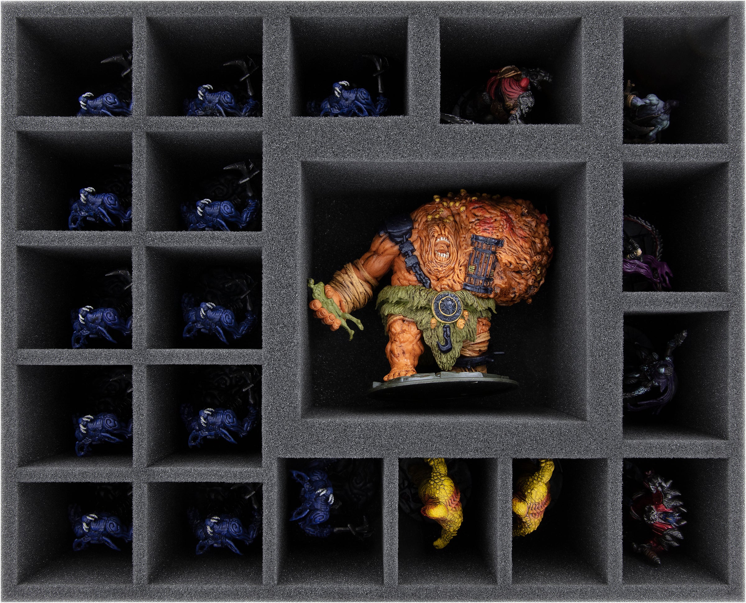 • 1 foam tray with 20 compartments for hero miniatures like Death, War, Fury, and Strife, as well as large miniatures like Jailer Boss and bulky miniatures.