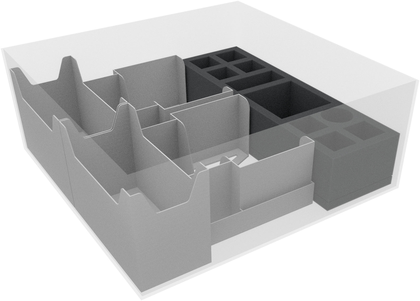 Finally, the included foam topper ensures that all contents are also protected from above. So nothing can bump against the lid of the board game box or fall out of the compartments.
