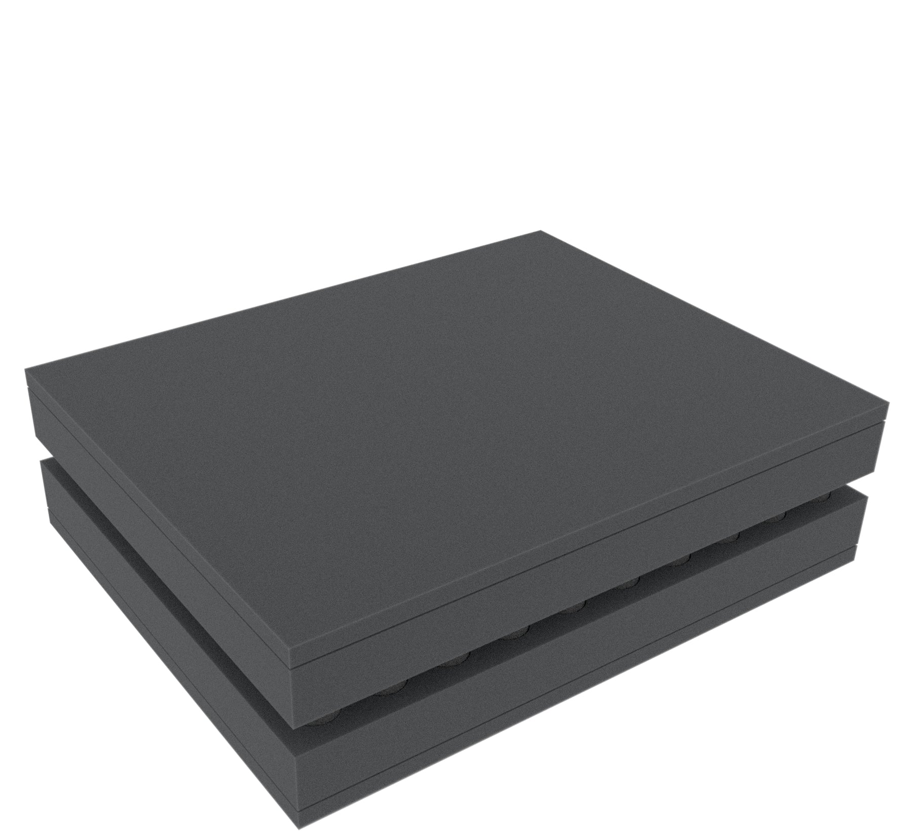 The Full-Size foam trays have the dimensions: 345 mm x 275 mm x 40 mm total height (30 mm usable height + 10 mm foam base).