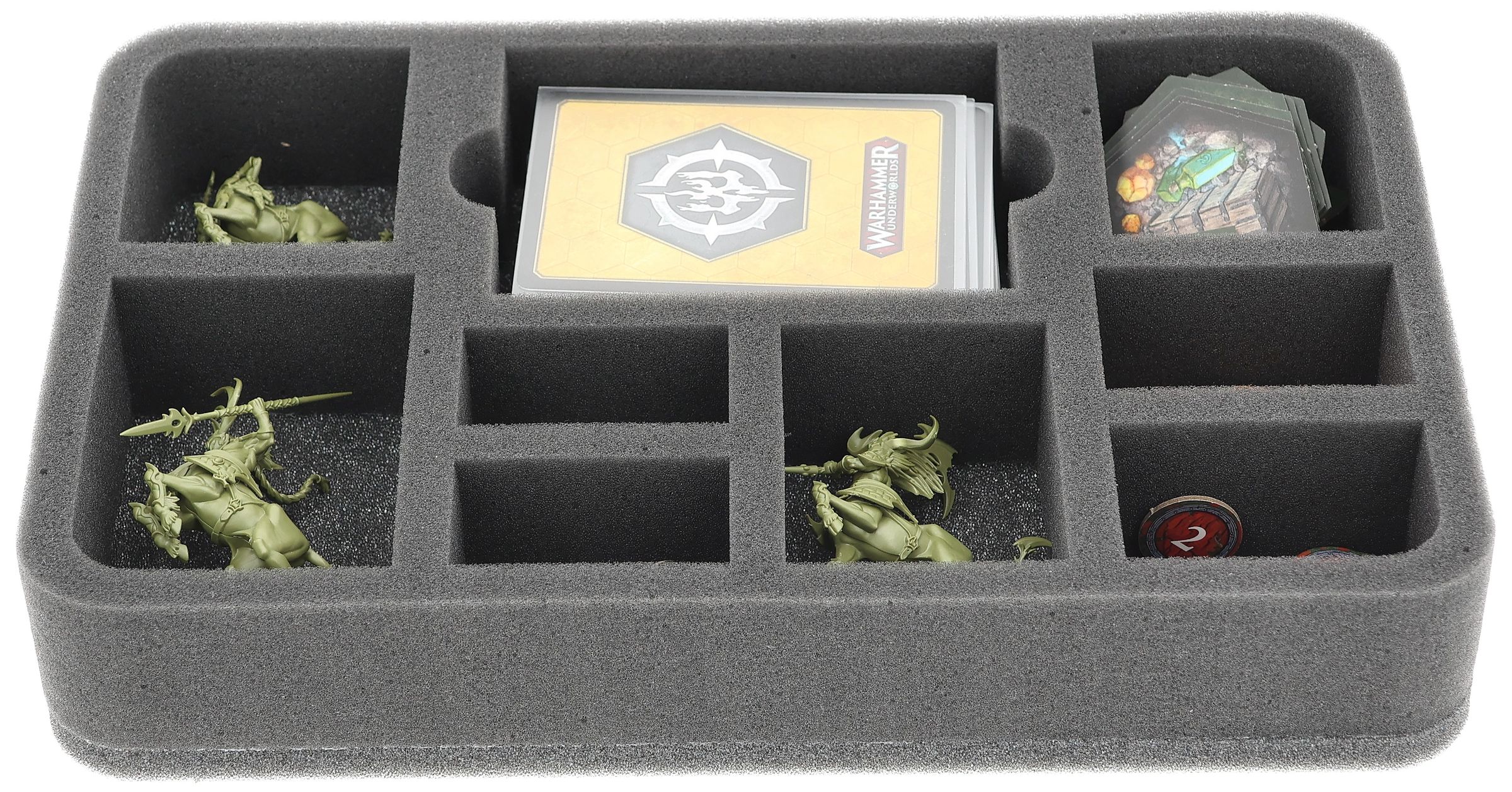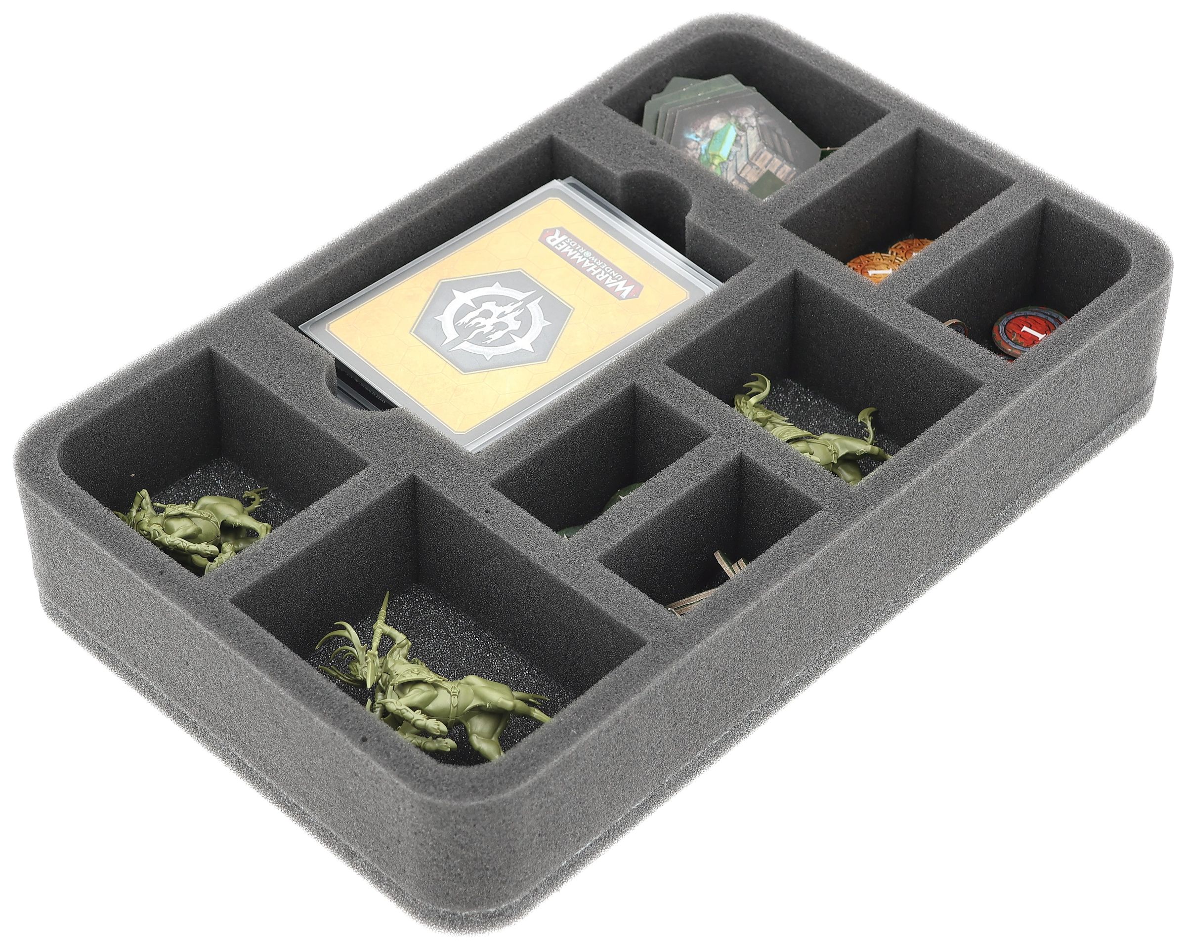This Feldherr Half-Size foam tray provides space for the 3 models in your warband, as well as cards and tokens. The precise cut ensures a snug fit so that nothing can slip during transport. The high-quality foam ensures that delicate details are reliably protected. The colors of painted figures are also preserved and protected from color abrasion and scratches.