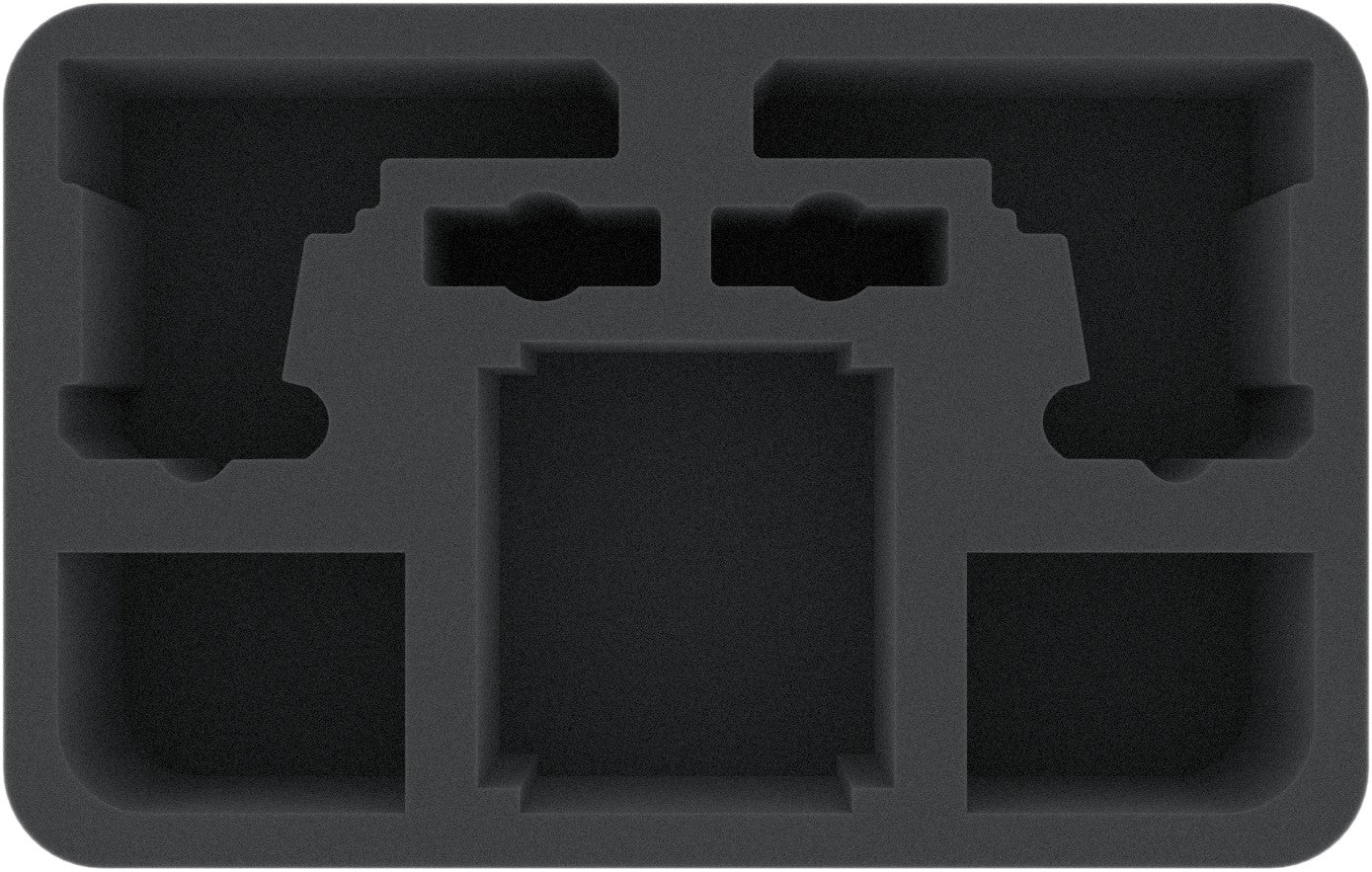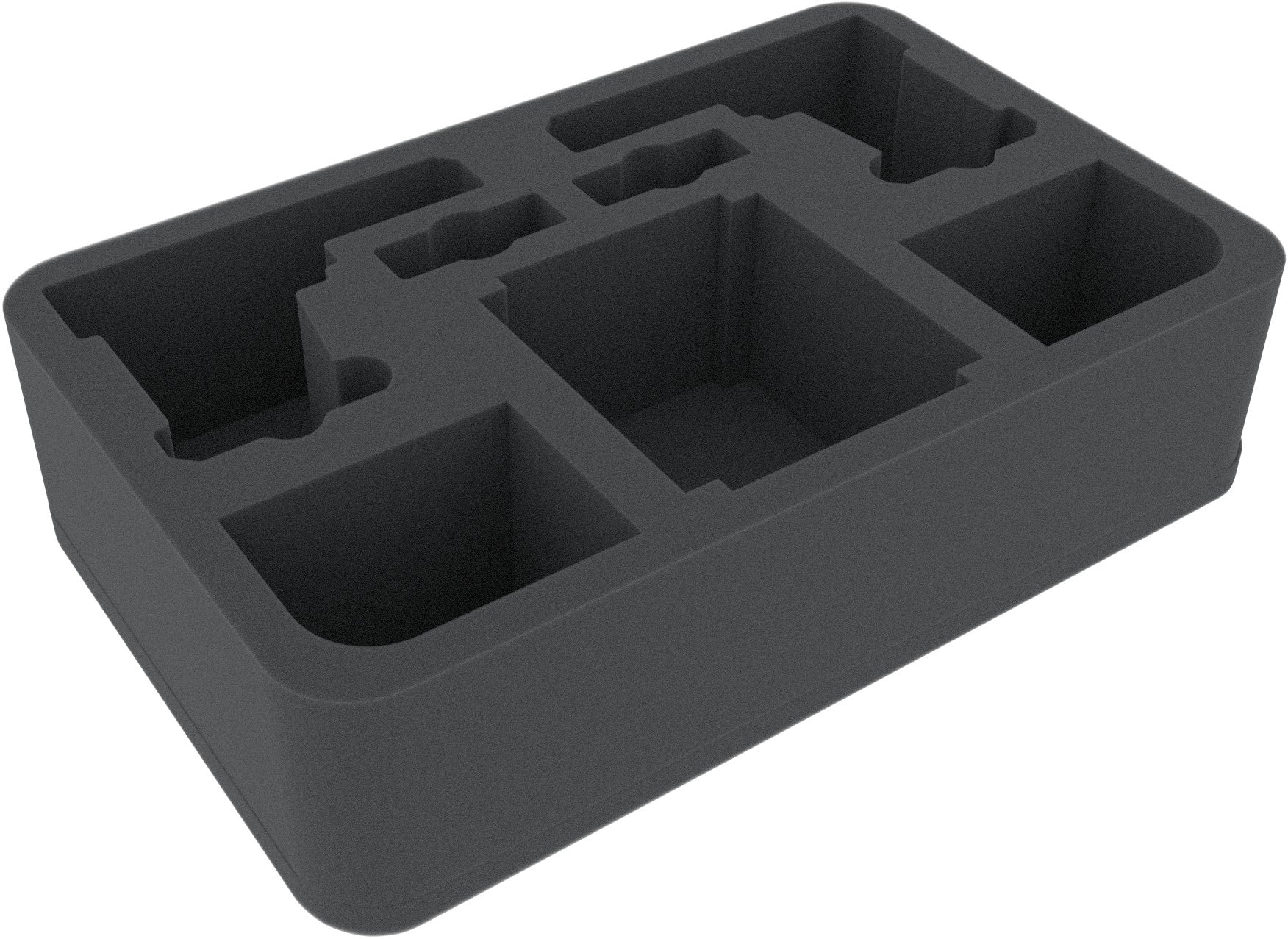 The Feldherr half-size (HS) foam tray has the dimensions: 275 mm x 172 mm x 70 mm height. The 70 mm depth of the foam is result from 10 mm foam base and slot foam tray with 60 mm effective depth