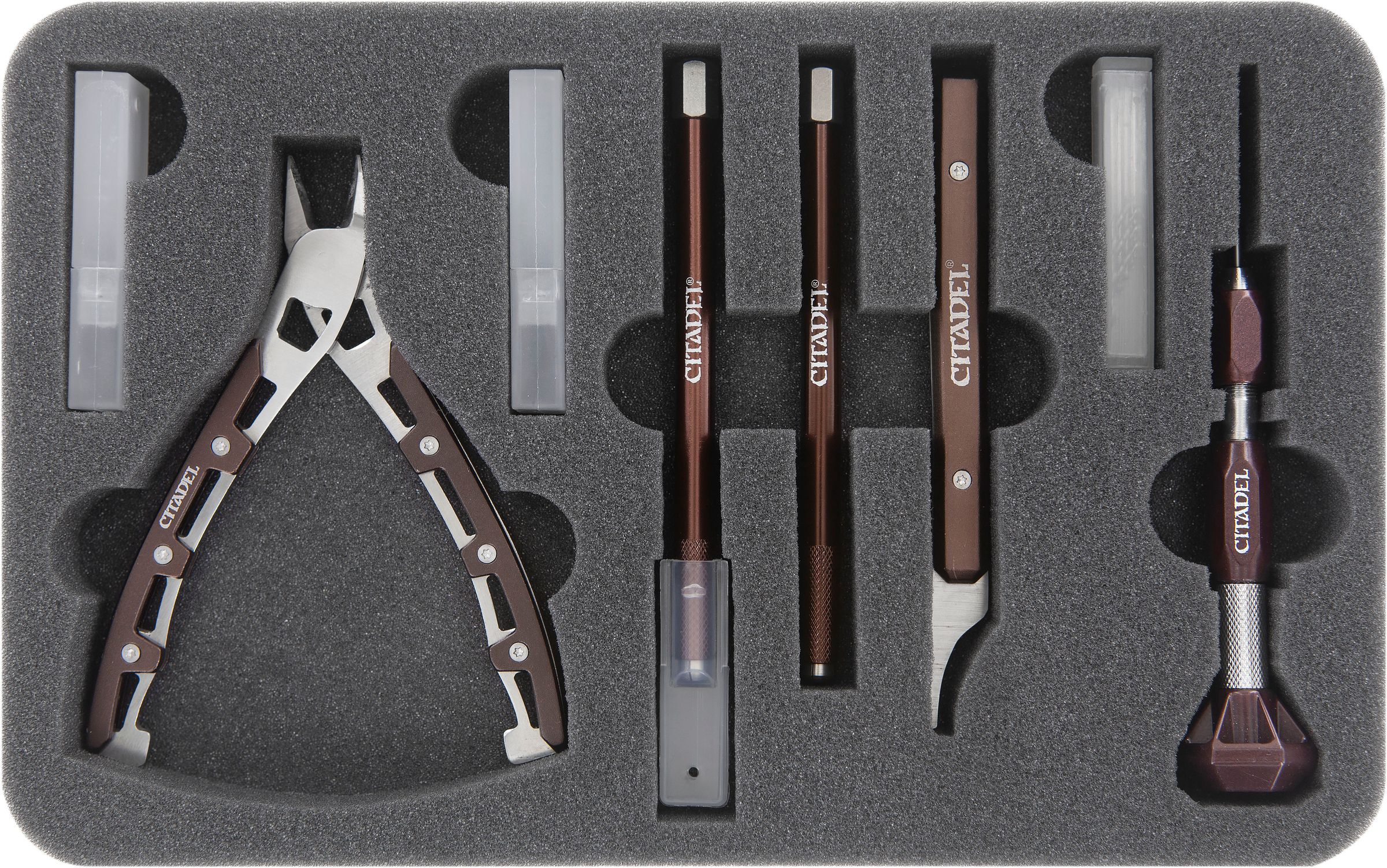 Five compartments are tailored for the following tools from GamesWorkshop: