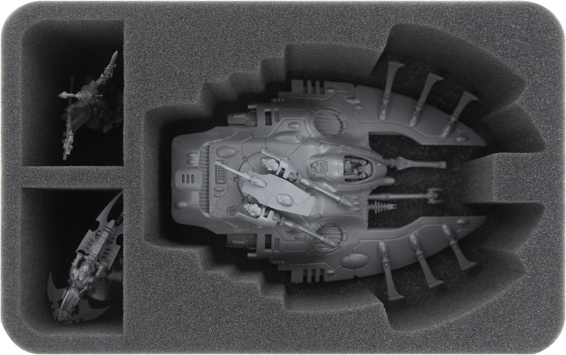 A large, miniature-precise cut compartment houses the Antigrav vehicle of your Aeldari army. The compartment is suitable for either a Wave Serpent troop carrier or a Falcon battle tank.