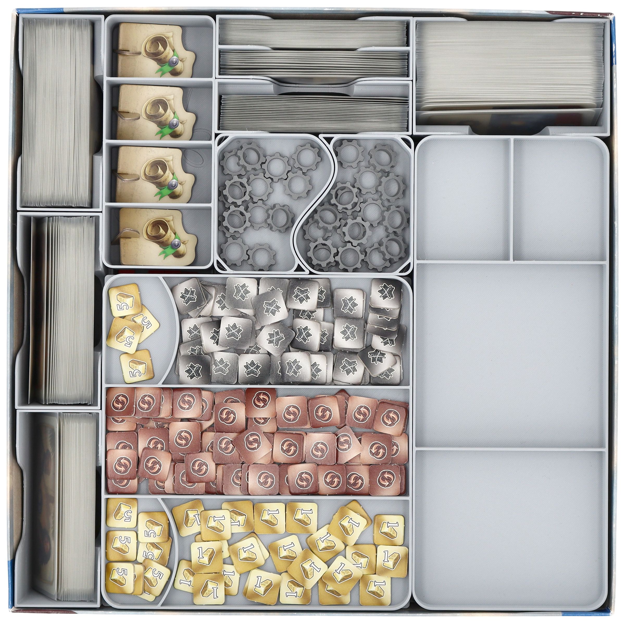 With this Feldherr Organizer Insert for Anno 1800, you can store the core game together with the Expansion in the base game box in the best organized way and sit back and relax, because on game night you'll have everything set up with no hazzle, in no time at all.