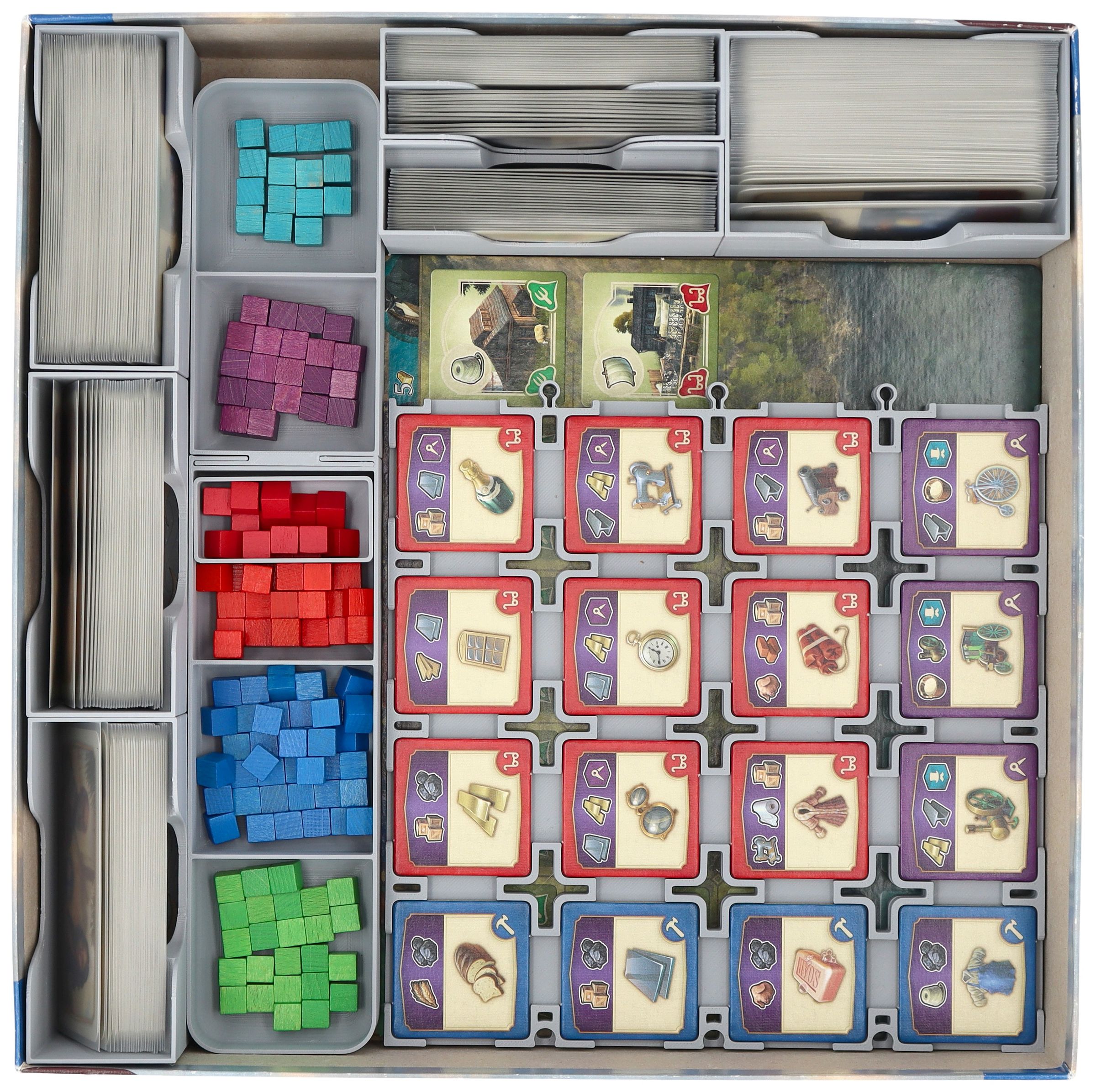 • The cards are also sorted by type so you can place the trays directly on the game board, immediately ready to play.