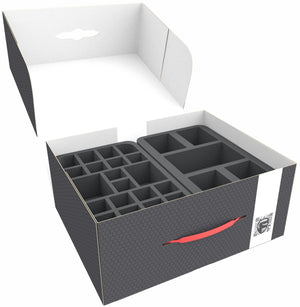 - Modułowe przegródki zapewniają miejsce na dodatkową zawartość, taką jak materiały kampanii i opcjonalne rozszerzenia. Rozwiązania transportowe z niestandardowymi przegrodami wewnętrznymi ułatwiają bezpieczny transport na wydarzenia i spotkania w grach.