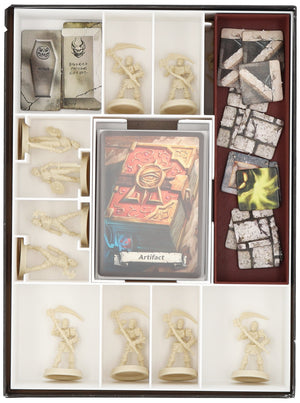 Elastyczne wkładki, tace i pudełka pomagają przechowywać zarówno grę podstawową HeroQuest, jak i rozszerzenia w sposób oszczędzający miejsce, chroniący przed kurzem i dobrze zorganizowany. Dzięki temu wszystko pozostaje na swoim miejscu i można je szybko skonfigurować.