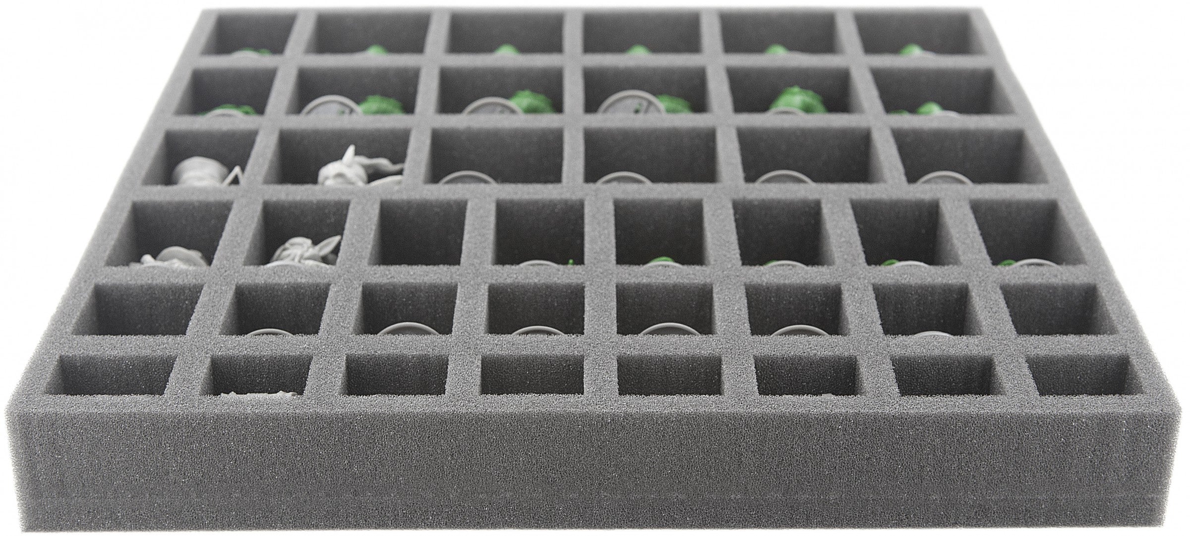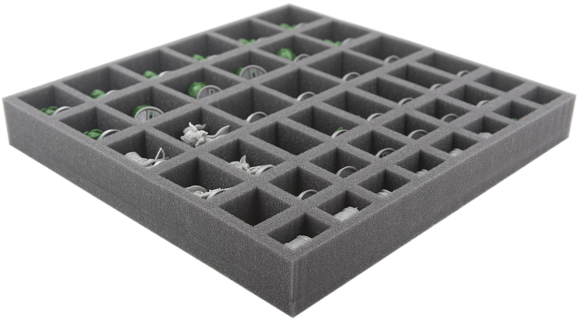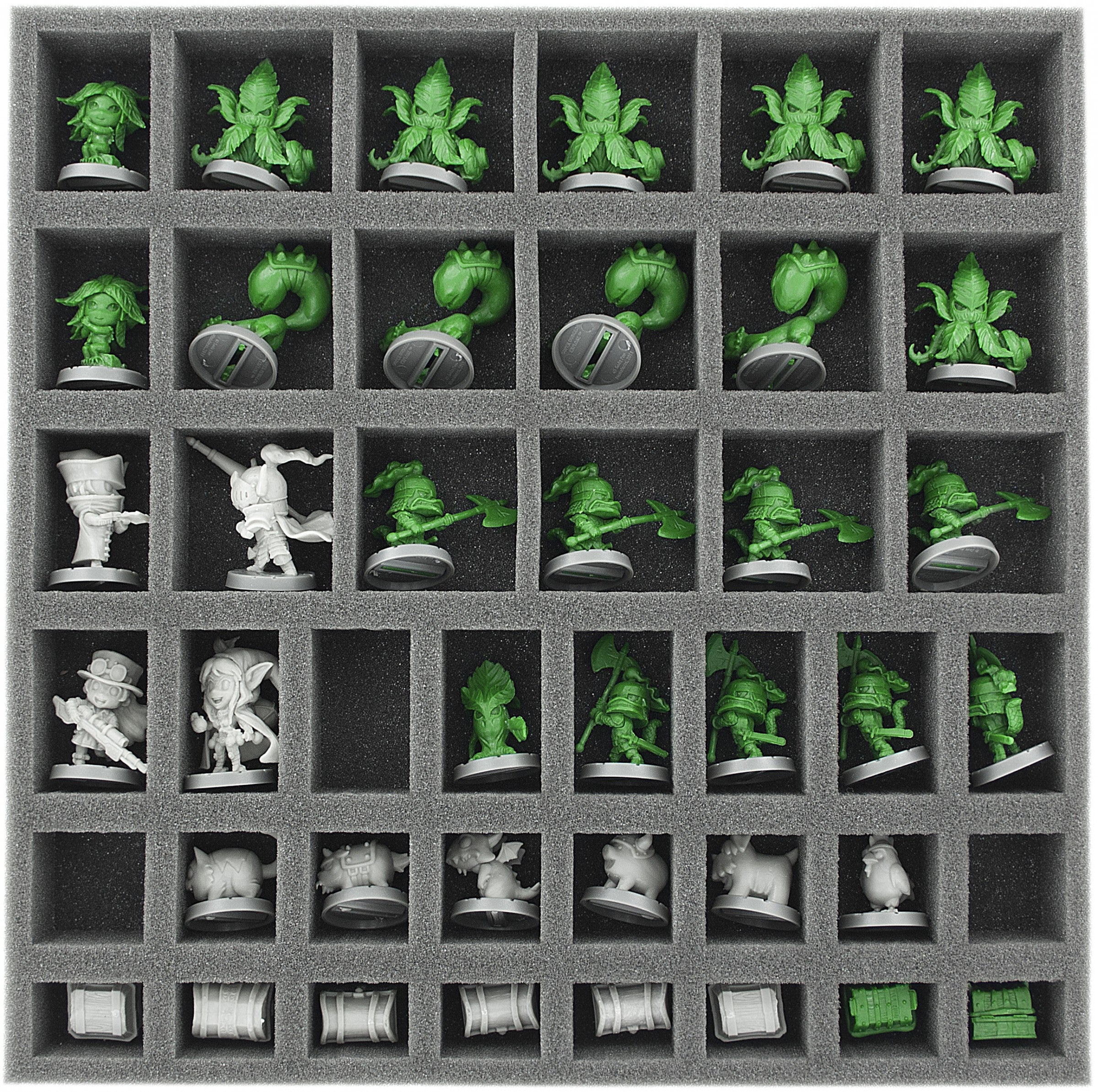 Taca na pianę specjalnie dla Super Dungeon Explore - Forgotten King. 42 sloty o różnych rozmiarach nadają się do wszystkich możliwych materiałów do gry.