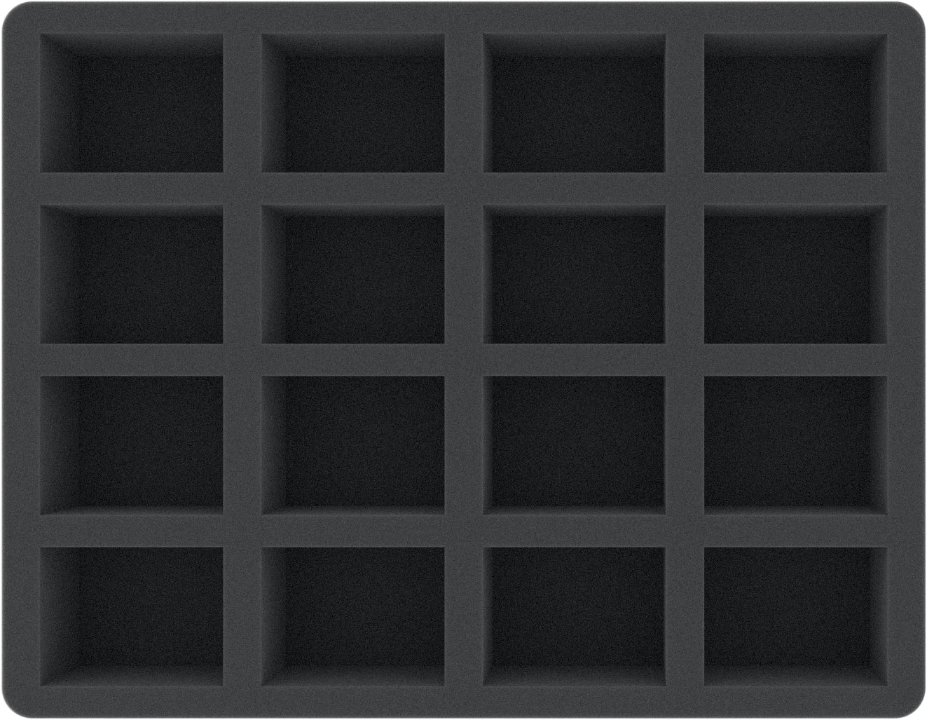 This Feldherr GWB-Size foam tray is divided into 16 compartments. It is ideal for safe storage of larger miniatures or game material.