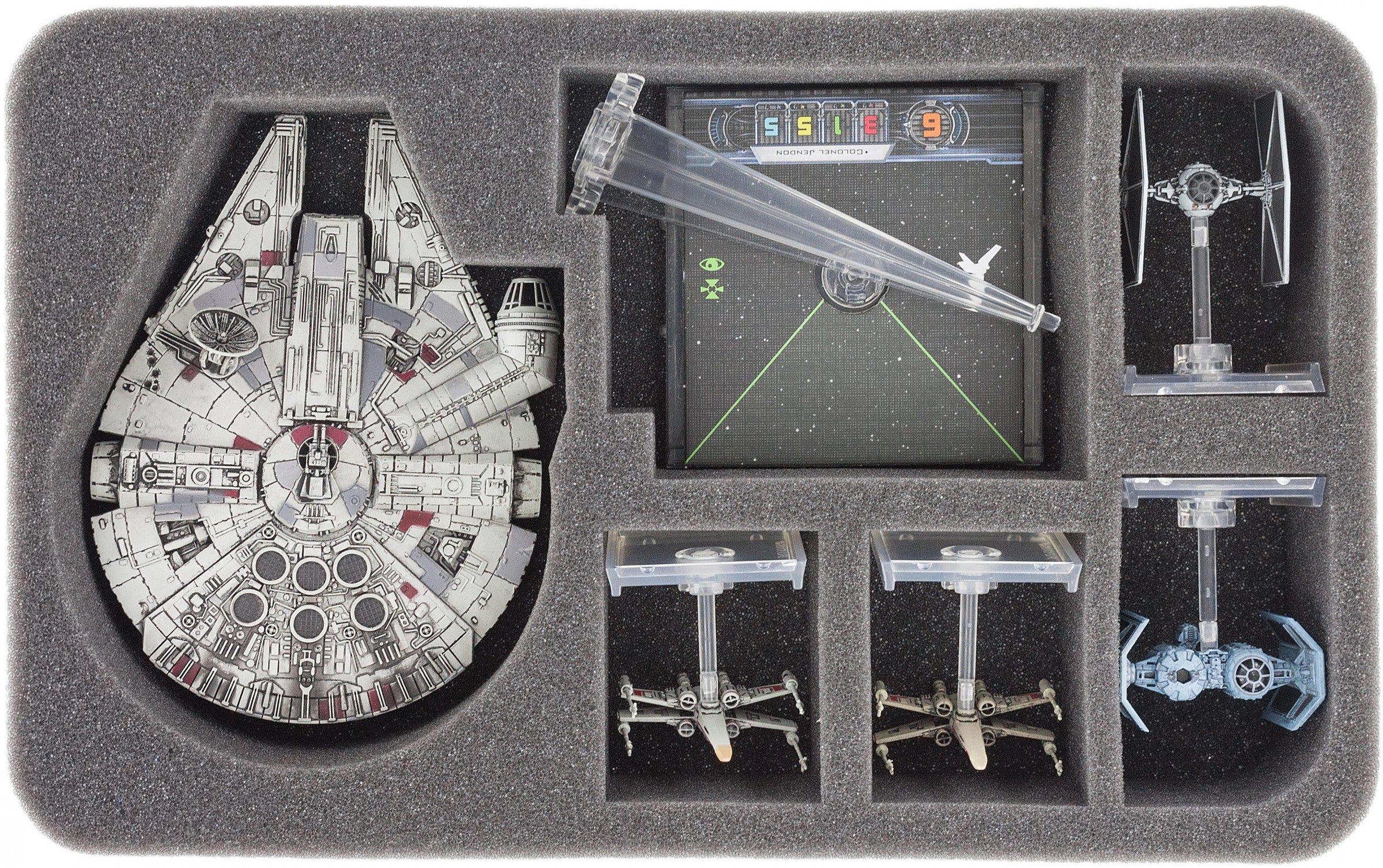 - 1 x HSBH050BO foam tray for Star Wars X-WING Millenium Falcon and 4 Fighter
