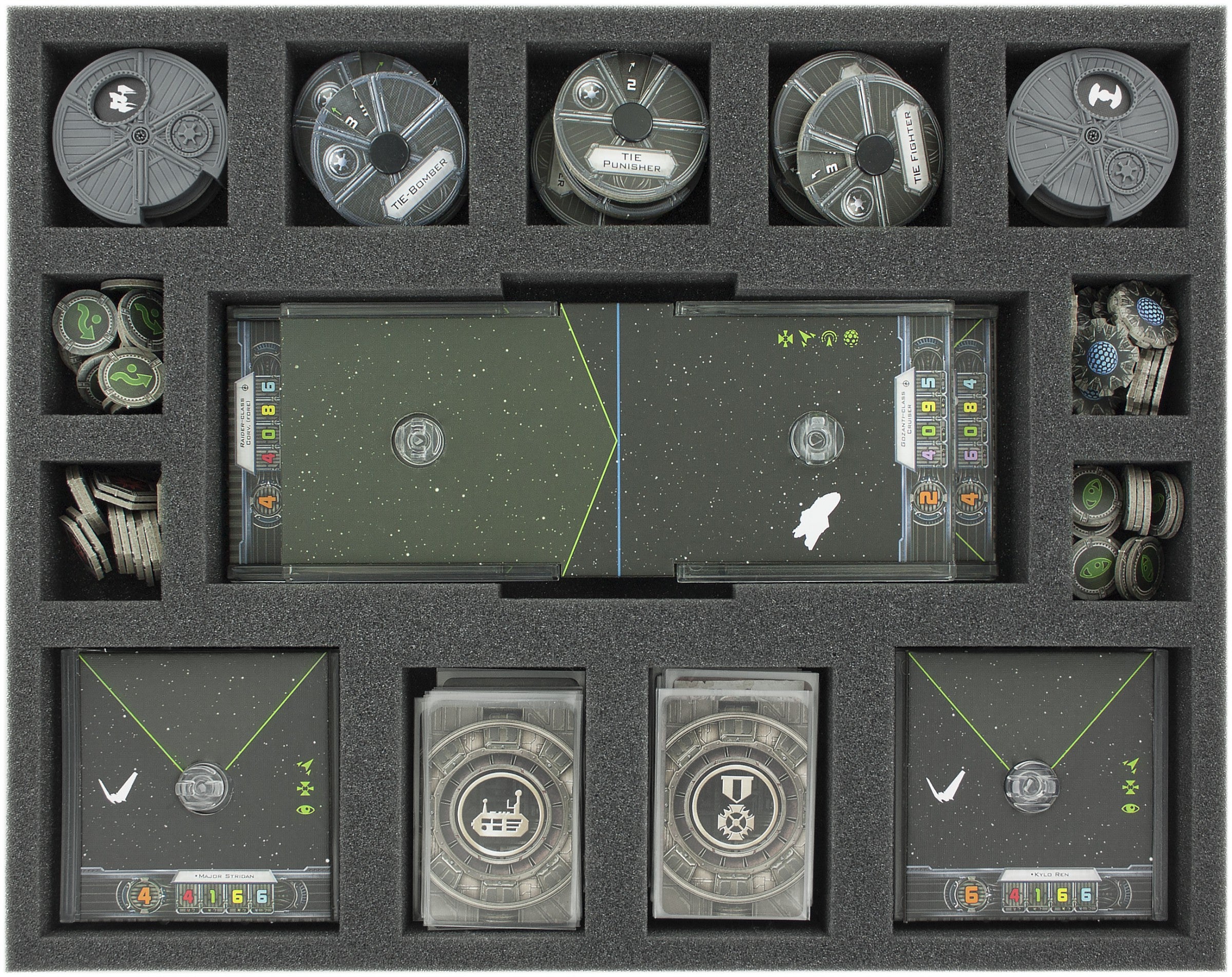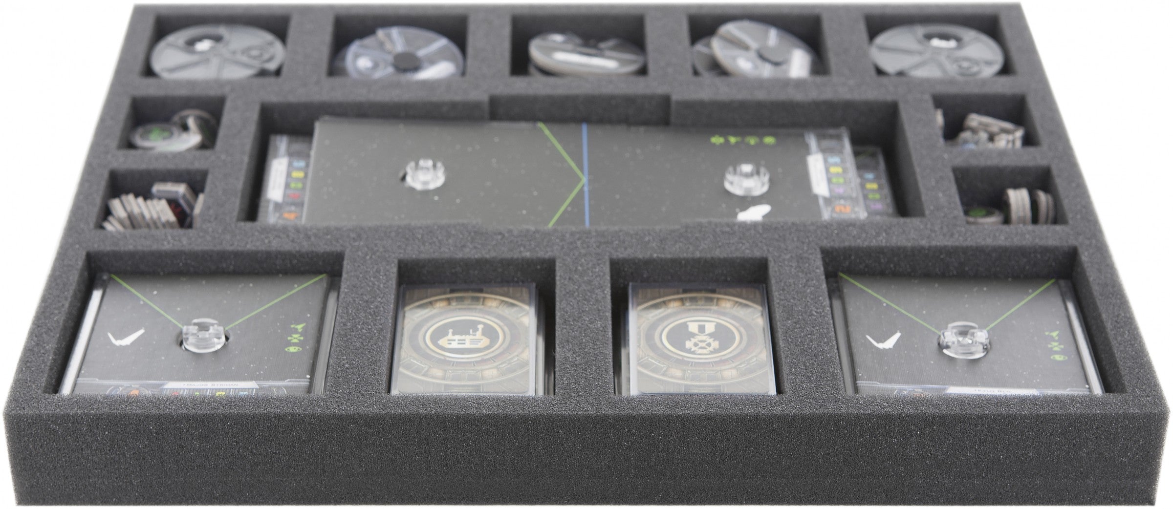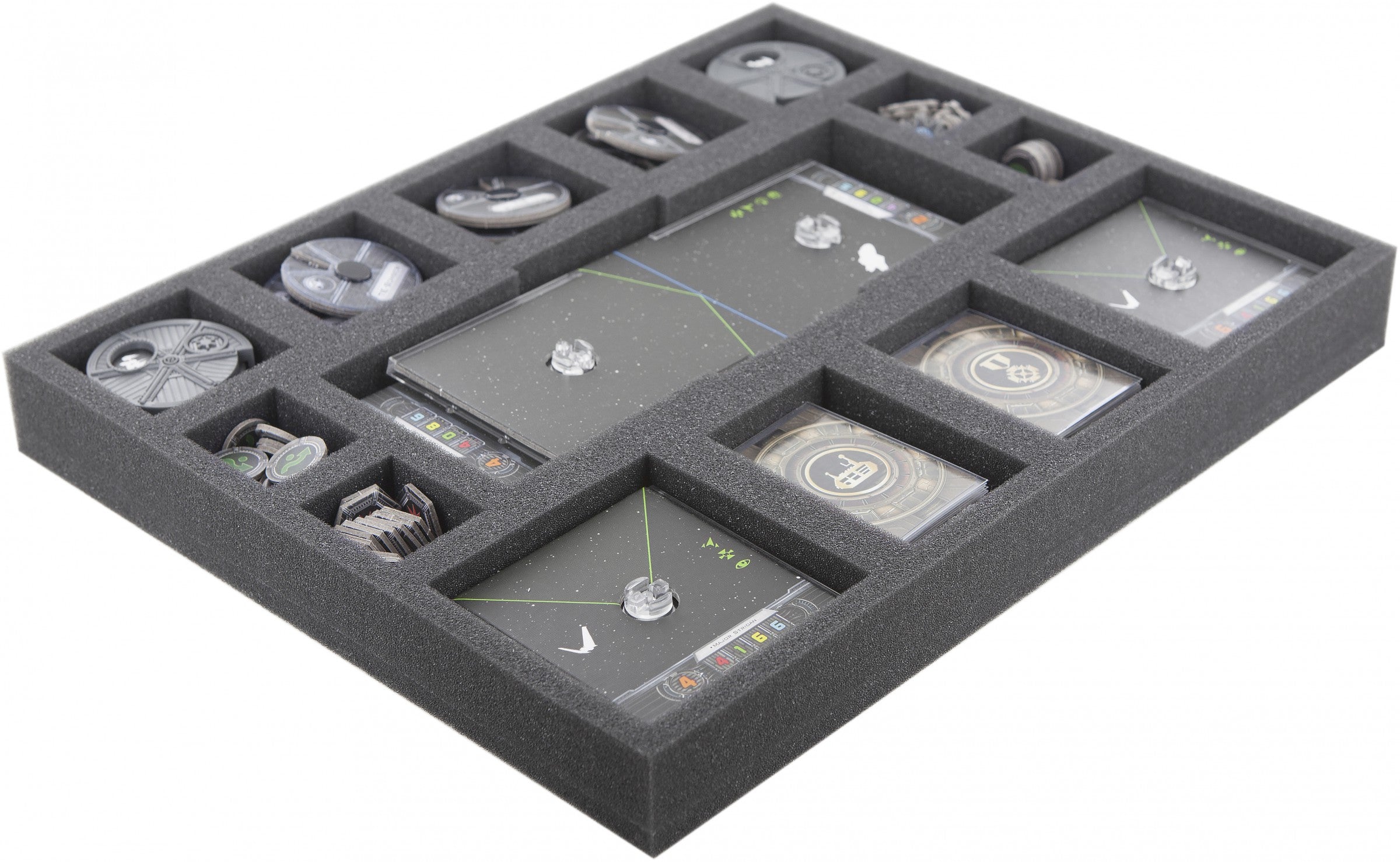 Perfect foam tray for Star Wars X-Wing accessories like bases, dails and tokens.