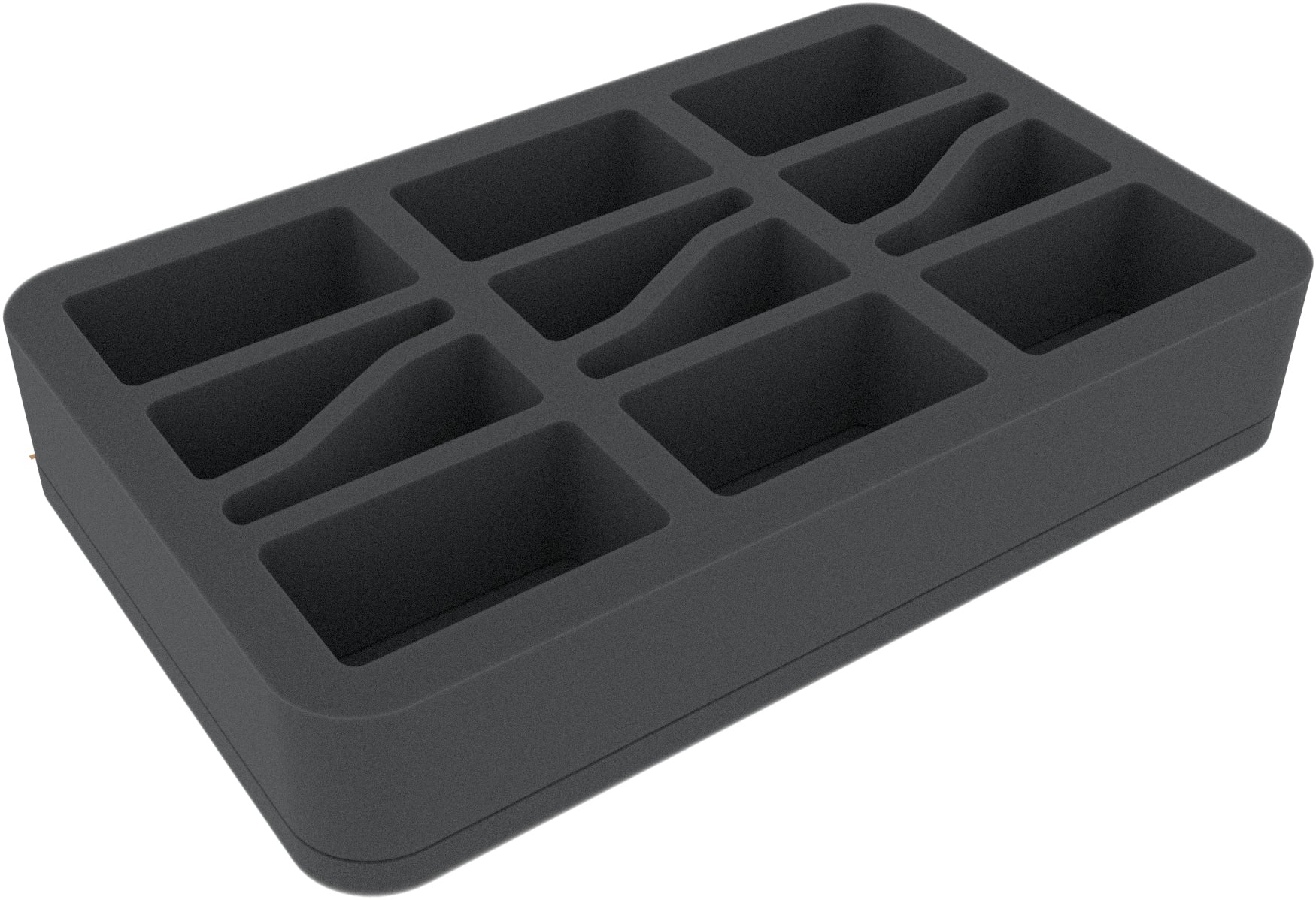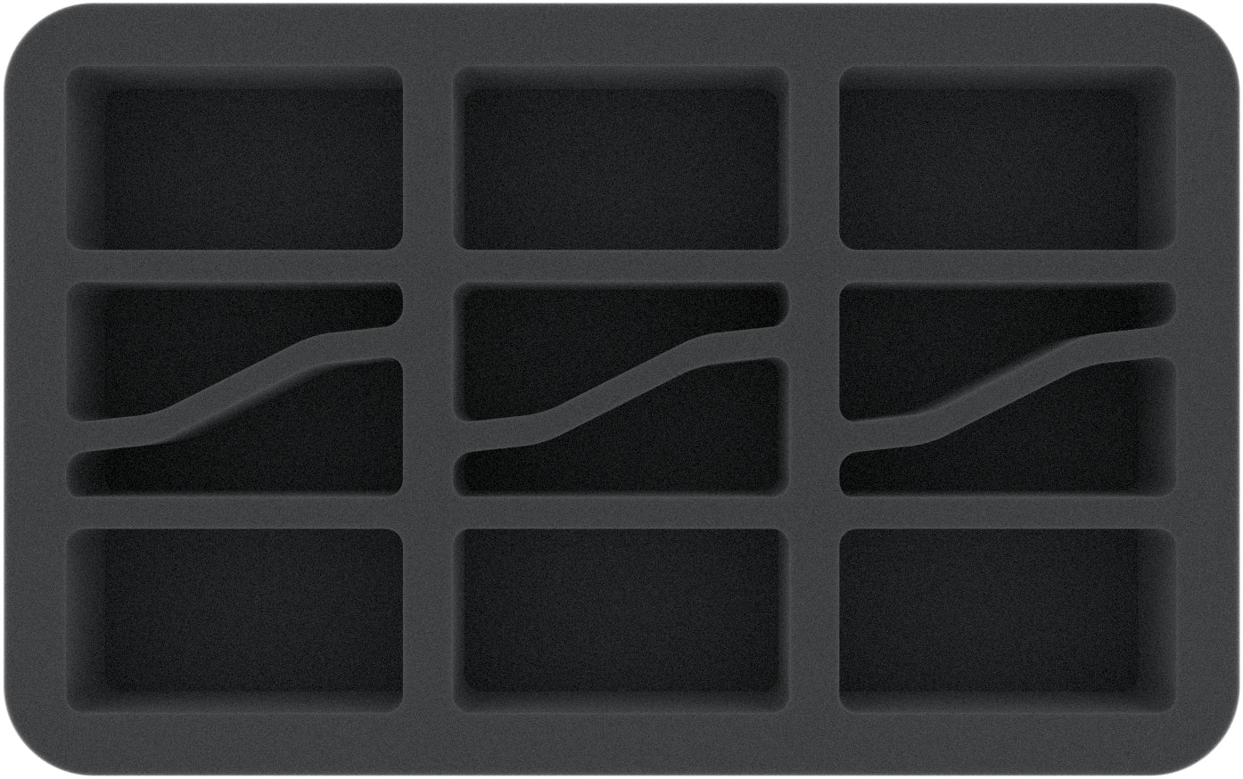 This Feldherr foam tray has 12 compartments for the clear and safe storage of wargaming miniatures in scale 1:100 (15 mm), e. g. miniatures of the games "Flames of War" or "Dropzone Commander".