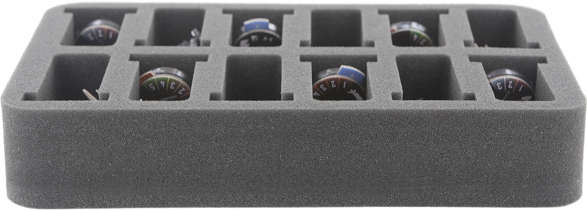 Grubość 50 mm dla tego zasobnika piankowego jest wynikiem zastosowania 10 mm podstawy piankowej i zasobnika piankowego o efektywnej wysokości 40 mm.