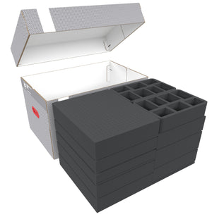Praktyczne przechowywanie i bezpieczny transport armii Stormcast Eternals: Dzięki dopasowanym wkładkom, pudełkom i skrzynkom, pomalowane figurki, podstawki, znaczniki i karty pozostają uporządkowane i dobrze chronione - w domu i w drodze do następnej gry Age of Sigmar.