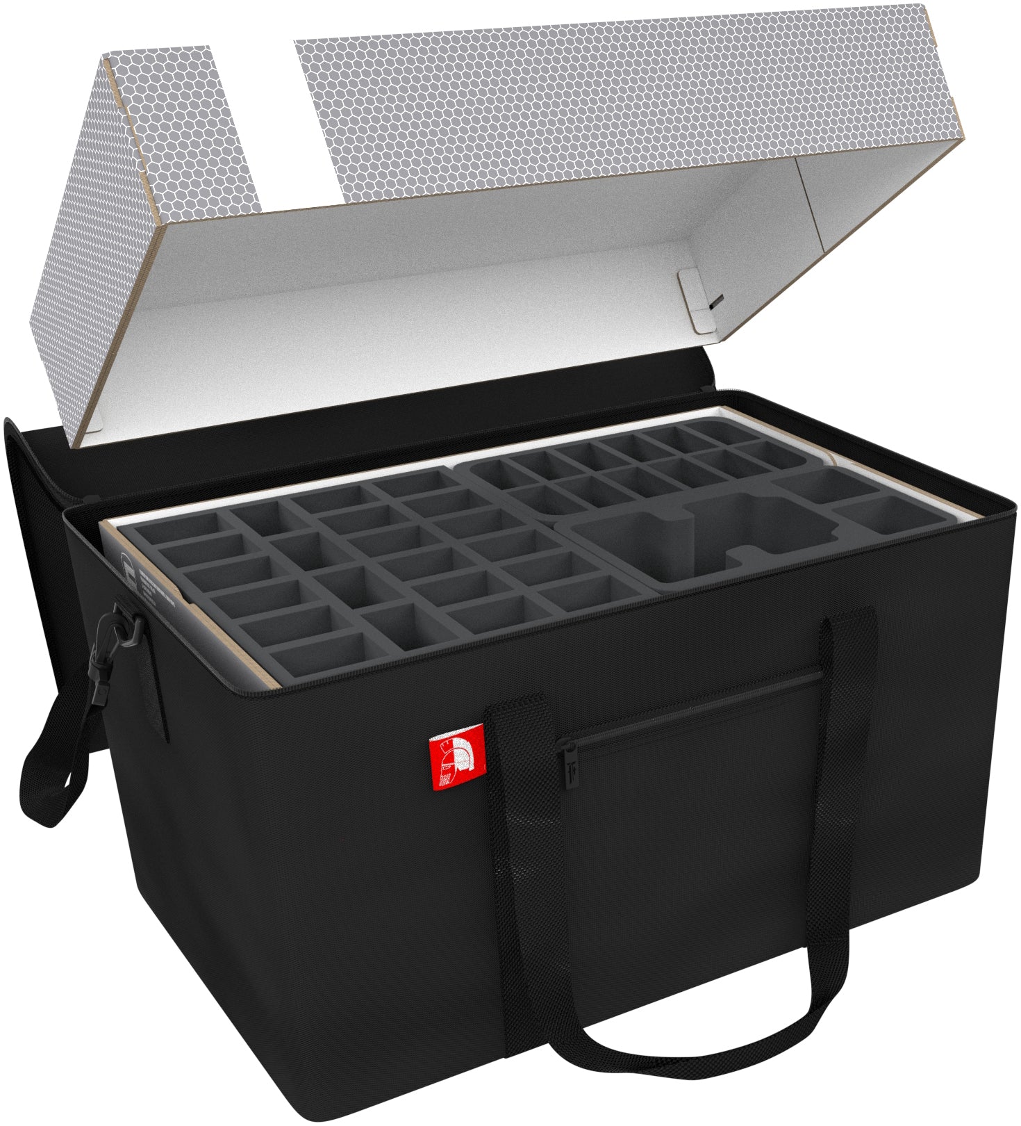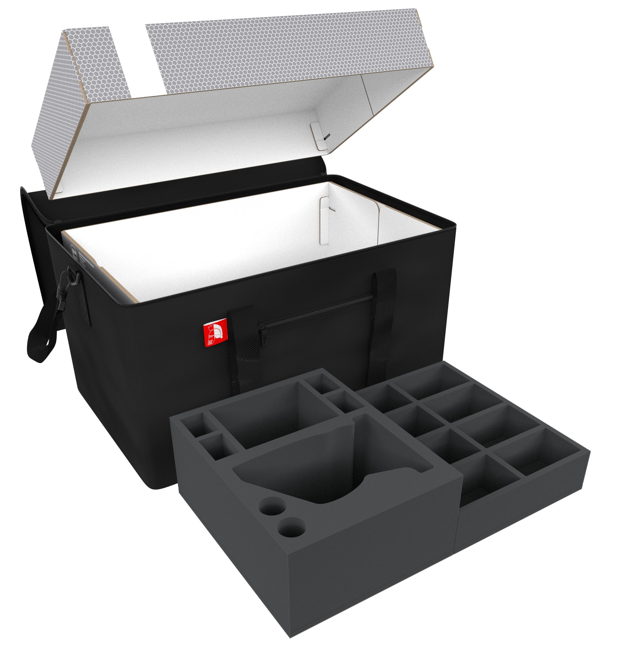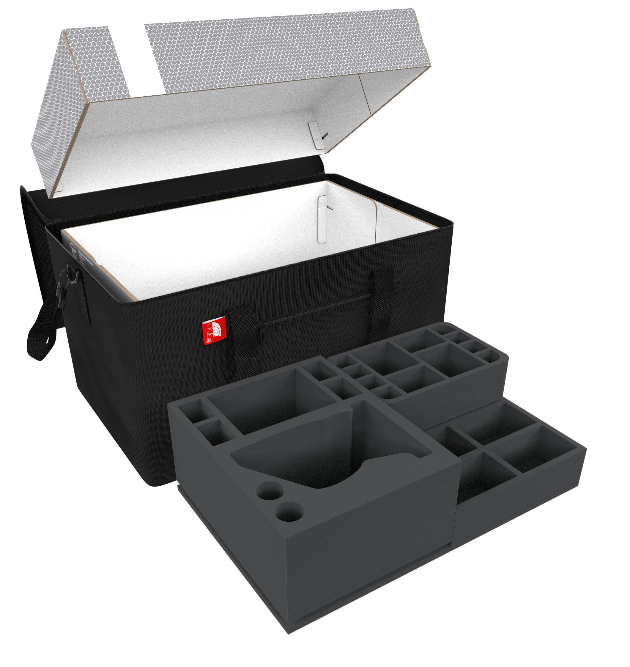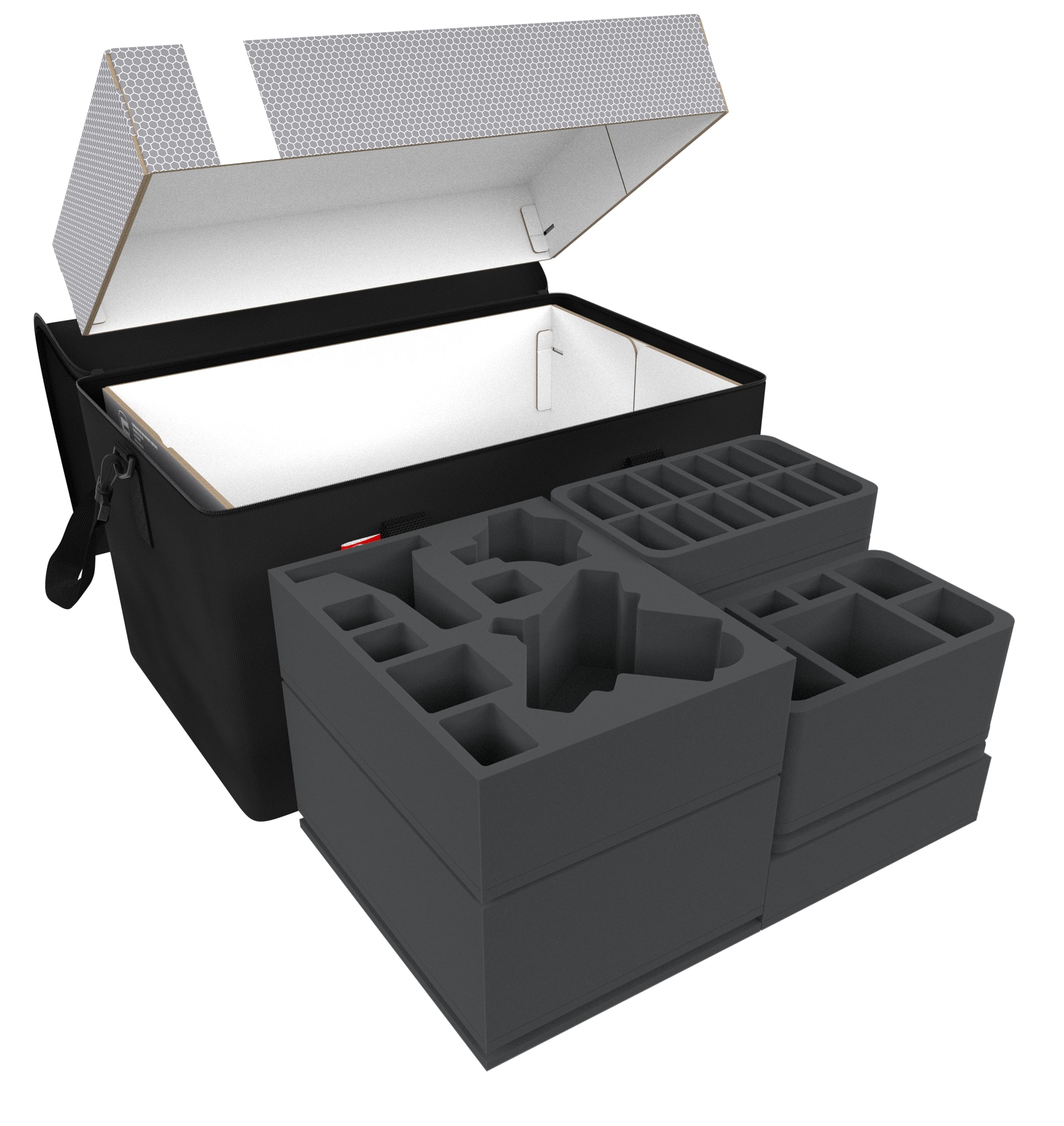 Finally the included foam toppers seal the deal. It ensures that the miniatures are protected from all sides and nothing can fall out of the trays during transport.
