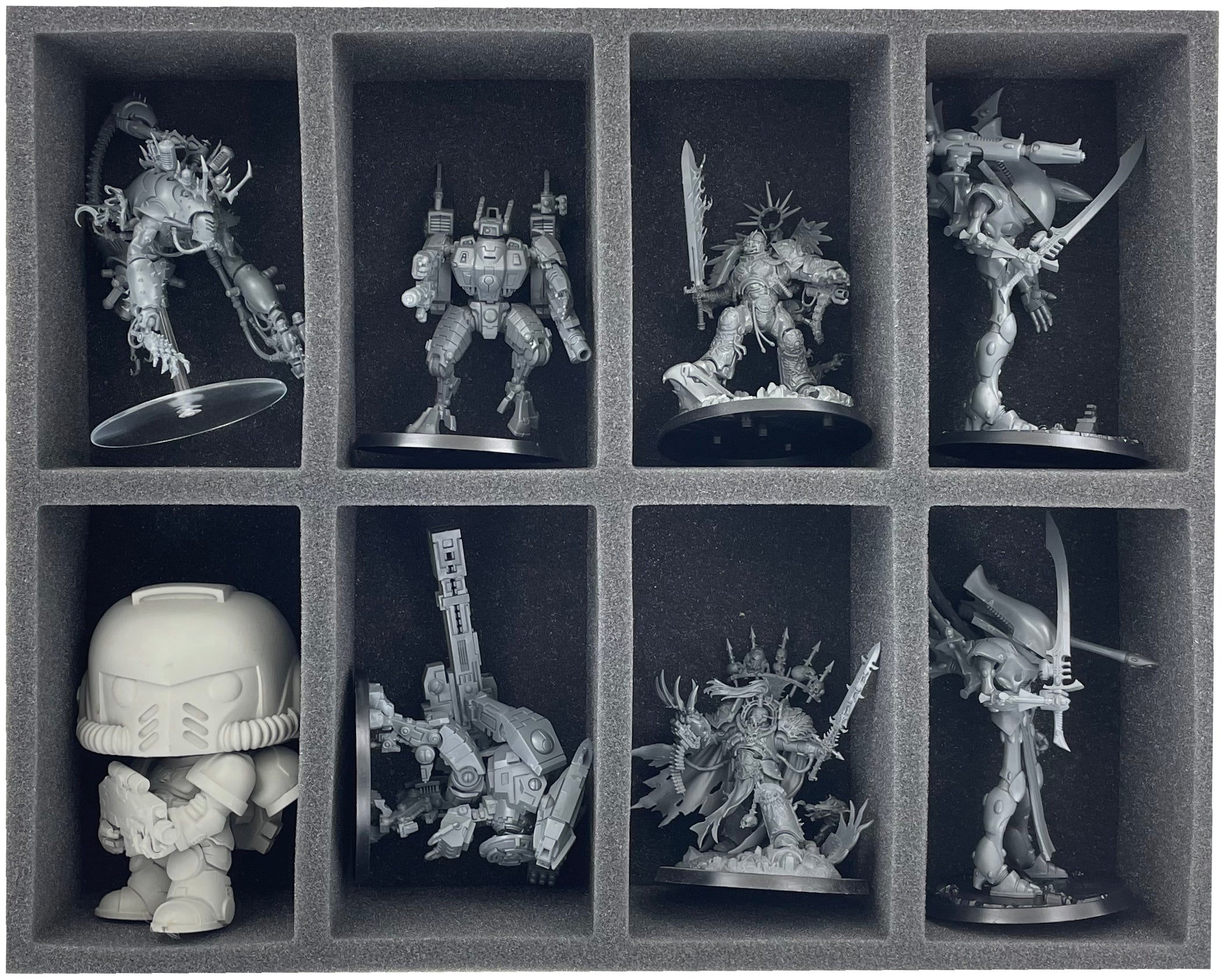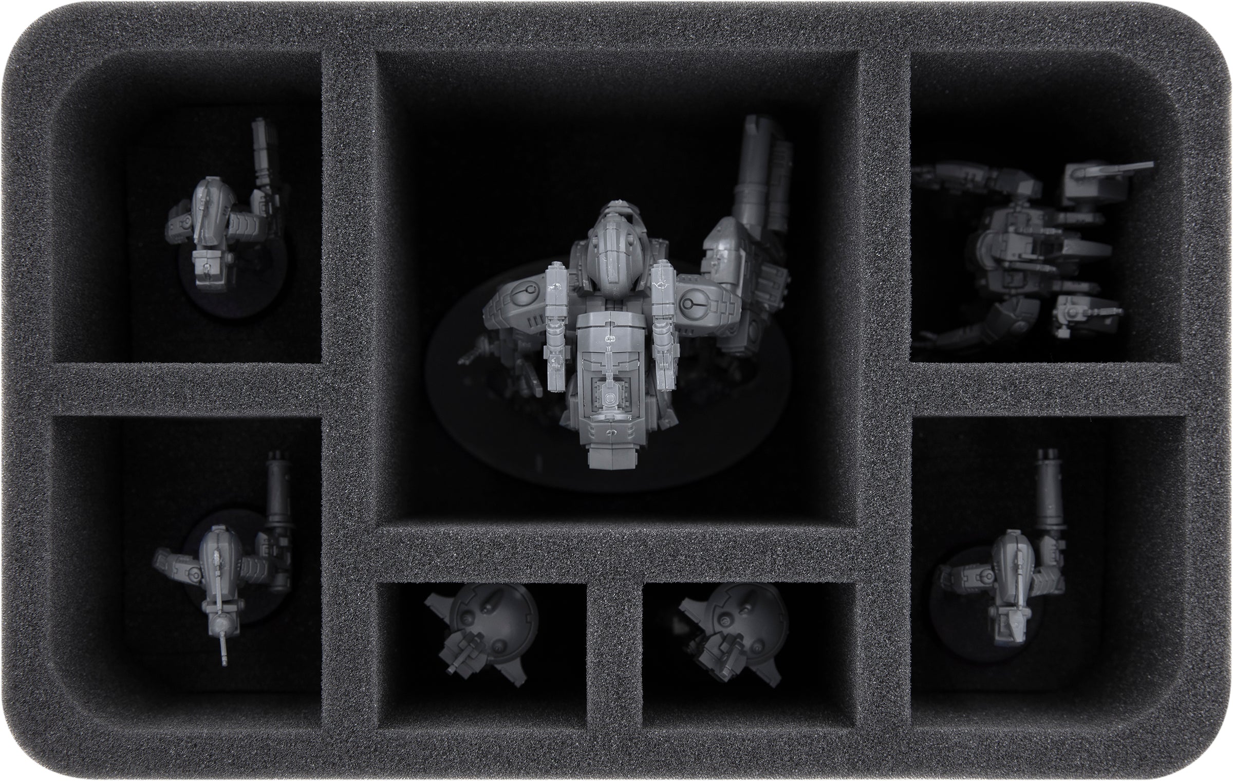 - 1 Full-Size foam tray with 8 compartments for a commander with XV85 / XV86 battlesuit (FS075A001)