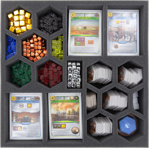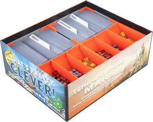 • Niezależnie od tego, czy jest to gra podstawowa, czy kilka rozszerzeń: Modułowe organizery i wkładki oferują elastyczne przegródki, które można dostosować do indywidualnej kolekcji Terraformacji Marsa i bezpiecznie spakować wszystko w jednym lub kilku pudełkach.