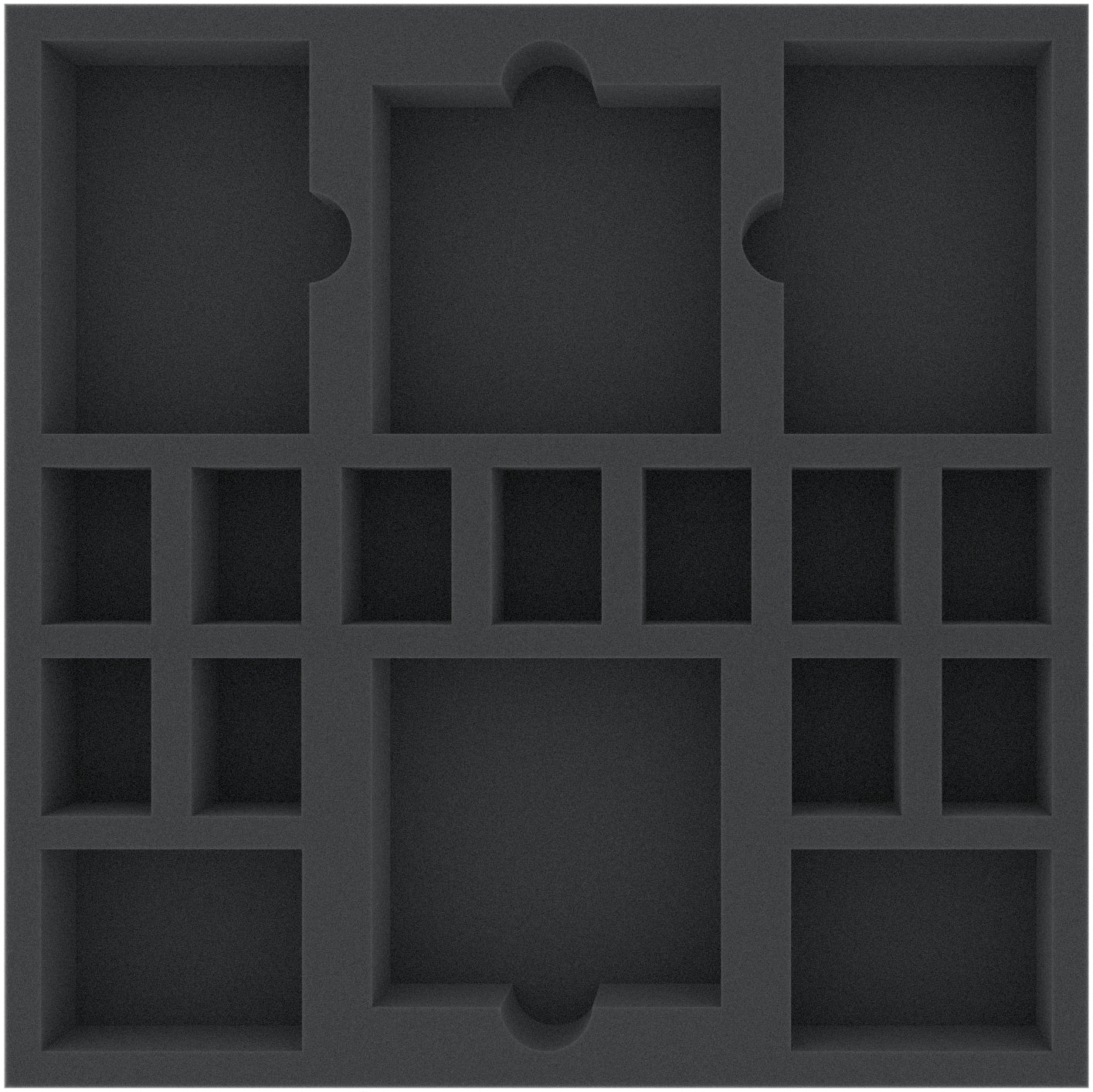 This 40 mm high foam tray is divided into 21 compartments. It is particularly suitable for the safe storage of tabletop and board game miniatures, as well as other fragile models and small parts.