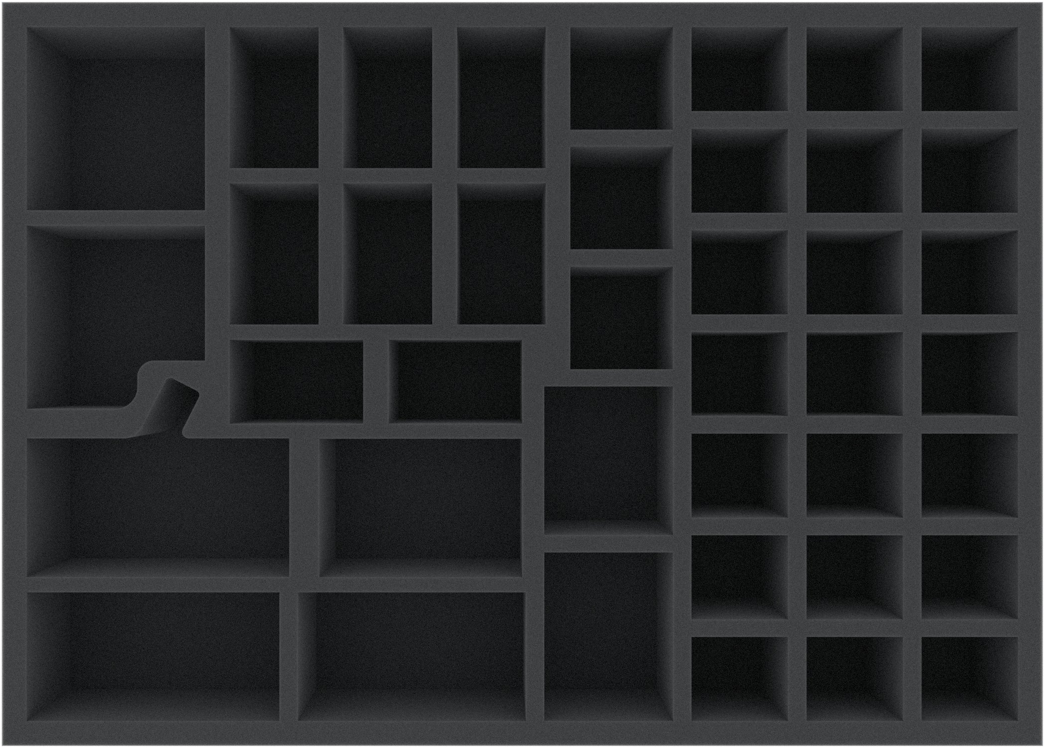 This 65 mm high foam tray is divided into 40 compartments. It is particularly suitable for the safe storage of tabletop and board game miniatures, as well as other fragile models and small parts.