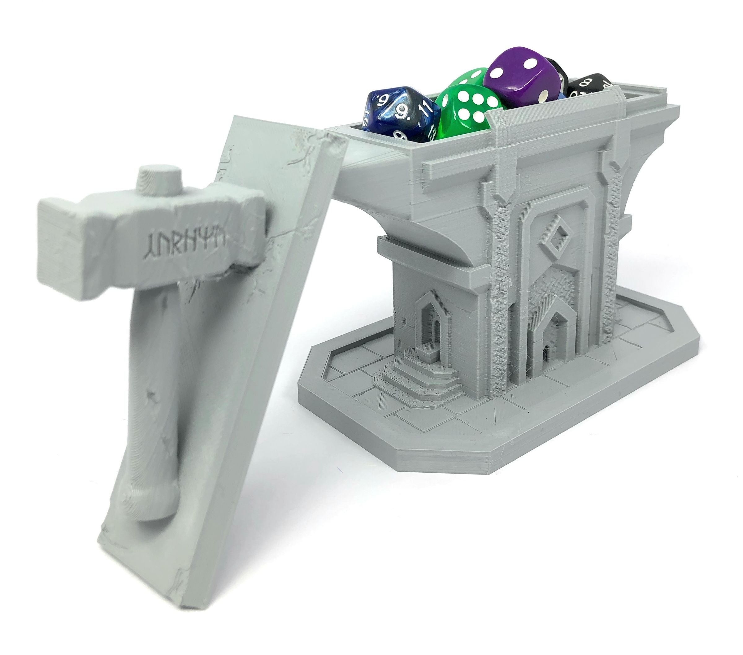 3D printed - detailed dice jail. The Dice Jail can also be used as a terrain part for your miniatures game or as a center piece for your next DnD session.