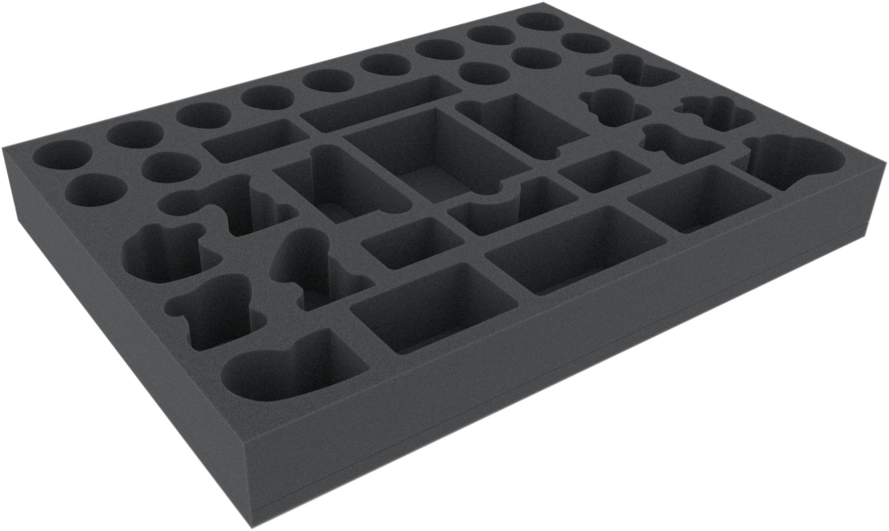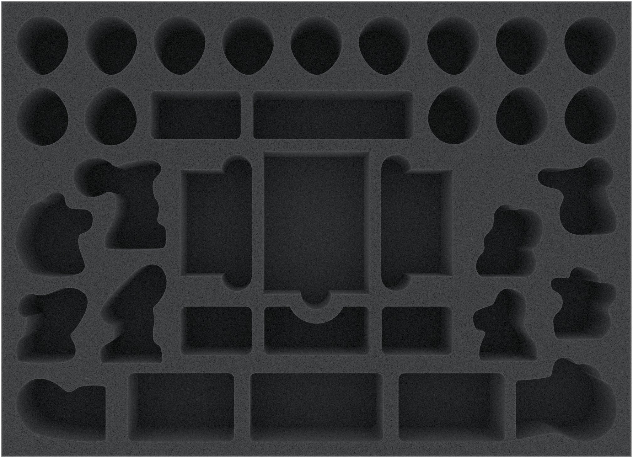 This Feldherr foam tray has 34 compartments for the safe and clear storage of "Claustrophobia 1643" game material. The fine-pored foam reliably protects your game components from damage – Fragile parts stay intact, surfaces are safe from scratches.