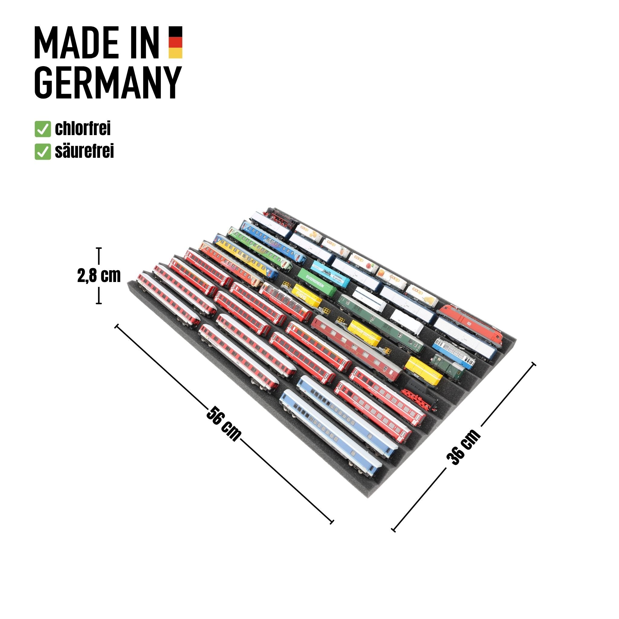 The all-round foam inlay for model railways in N gauge.