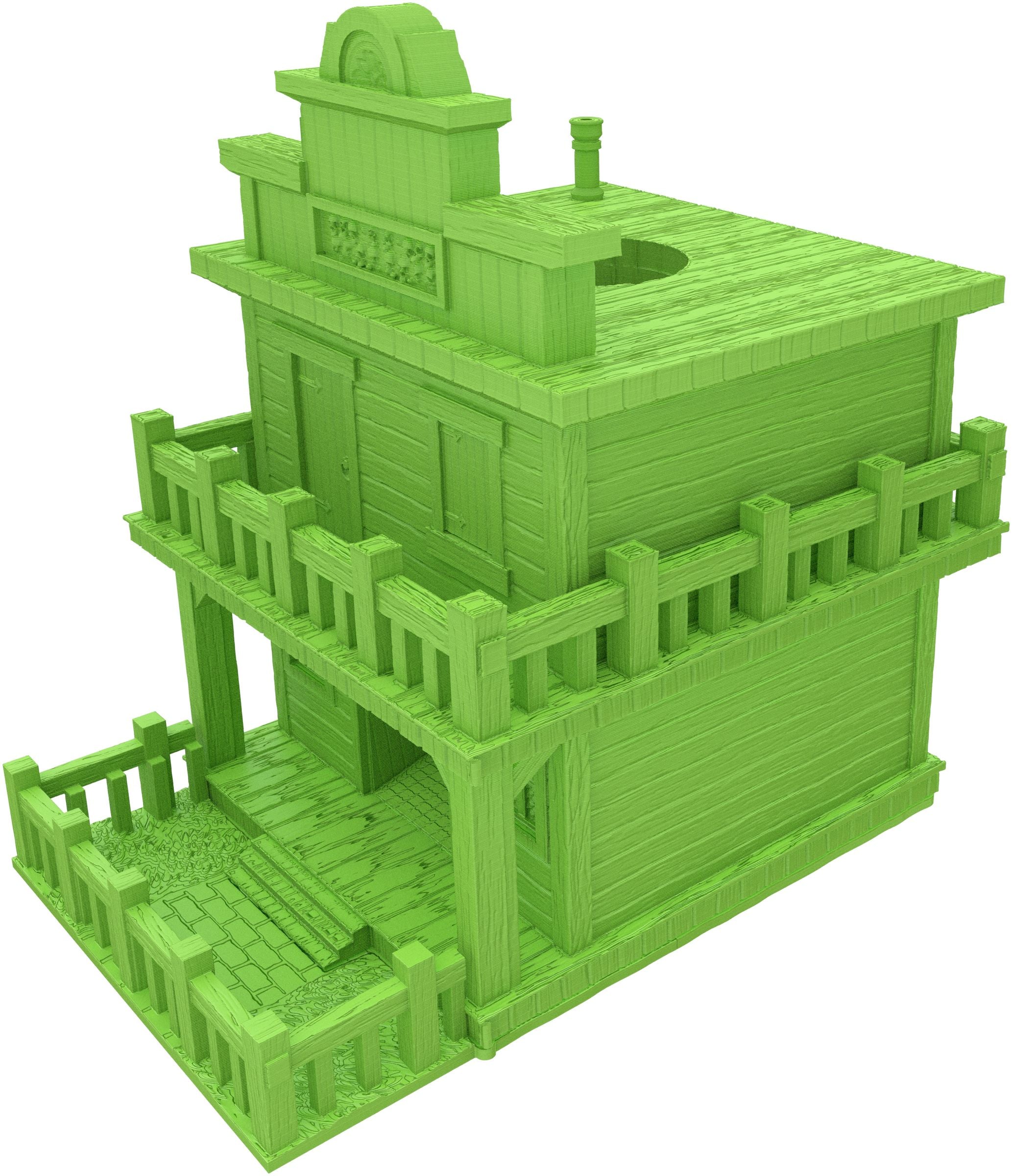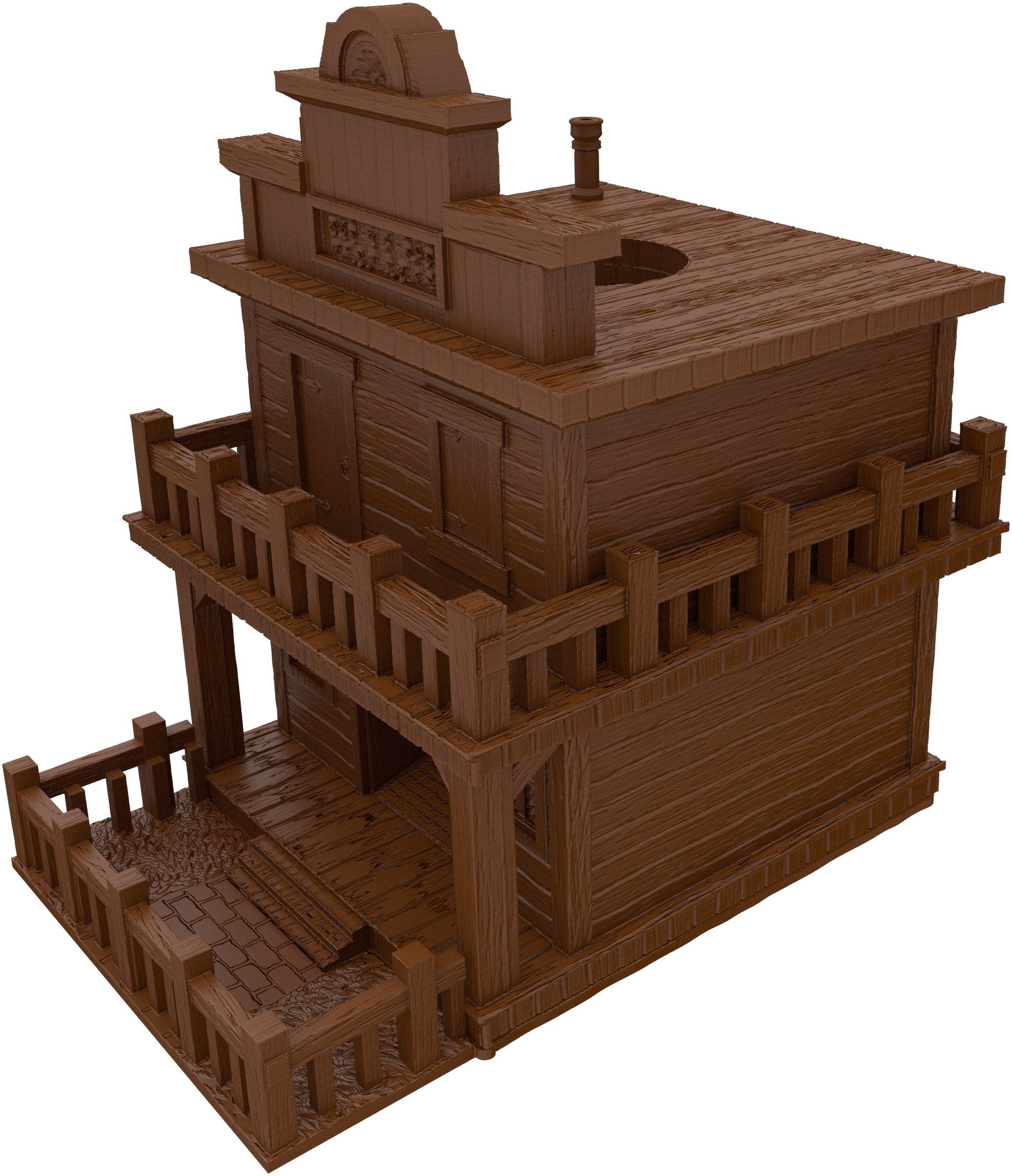 3D printed - detailed dice tower, with removable roof and exchangeable dice tray. The Dice Tower can also be used as a terrain part for your miniatures game or as a center piece for your next DnD session.