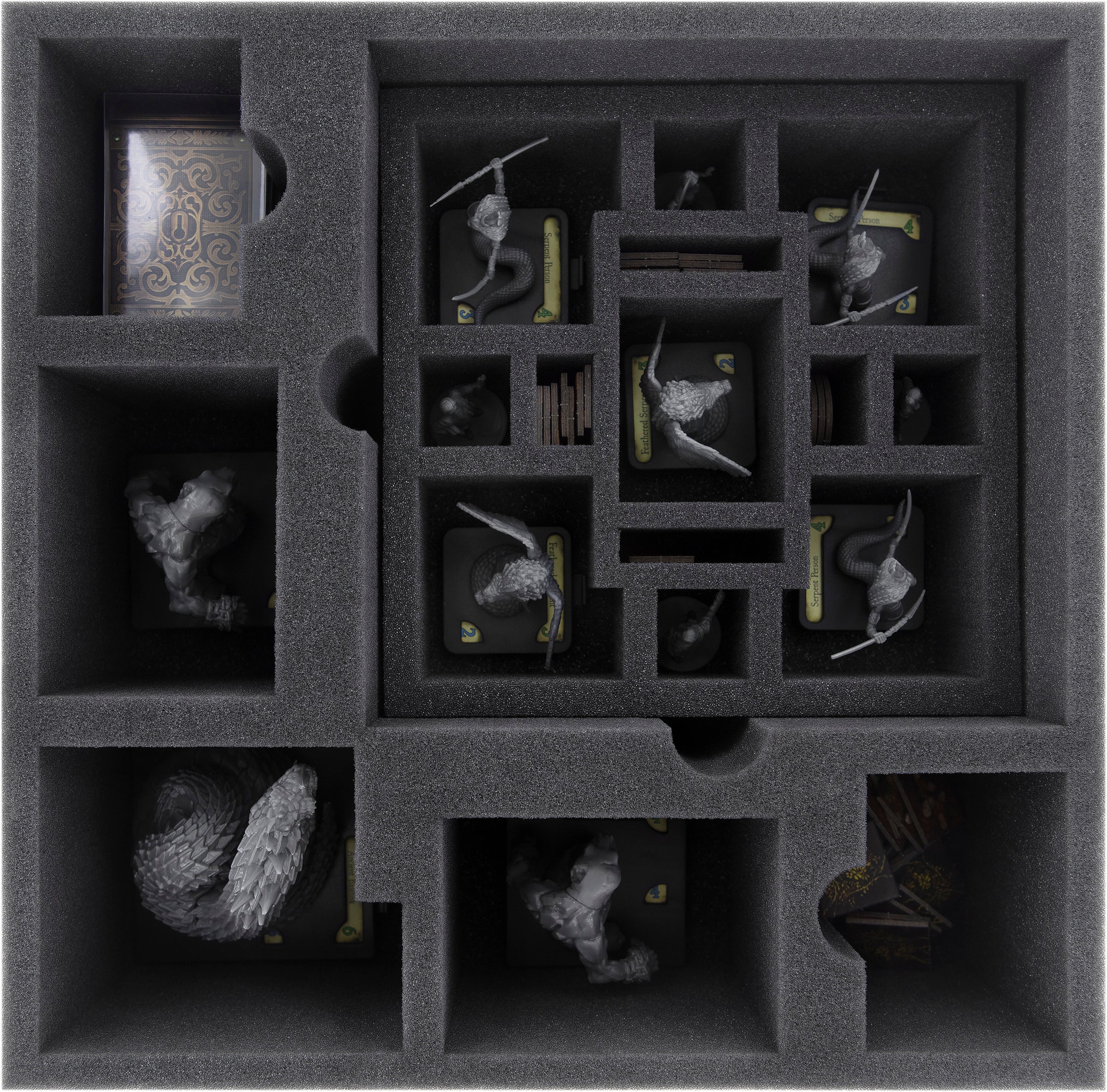 This gives you everything you need to store your collection properly. The five foam sets will help you to sort the miniatures and the game material in the original board game boxes.