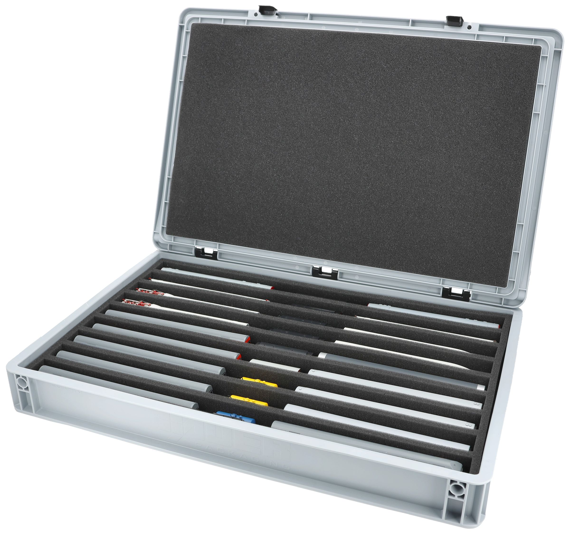 The fine-pored foam reliably protects sensitive details, paintwork and attachments on your models from scratches and damage. The sturdy Eurobox made of shock-resistant plastic provides additional protection from external influences. A simple hinge system with two locks keeps the box securely closed and protects the contents from dust and dirt.