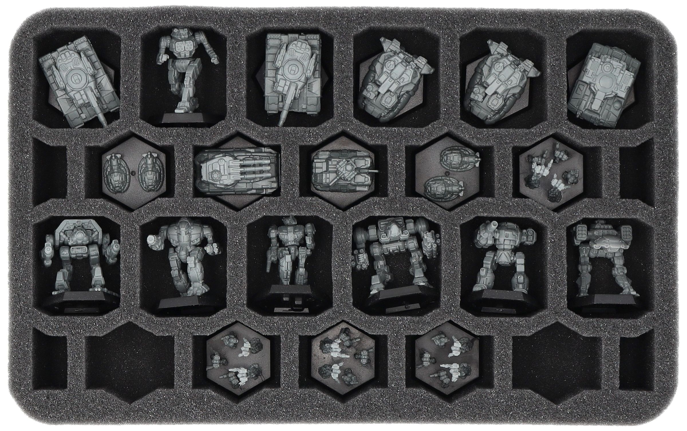- Eurobox filled with three foam inserts, providing a total of 67 compartments for BattleTech mechs and tanks