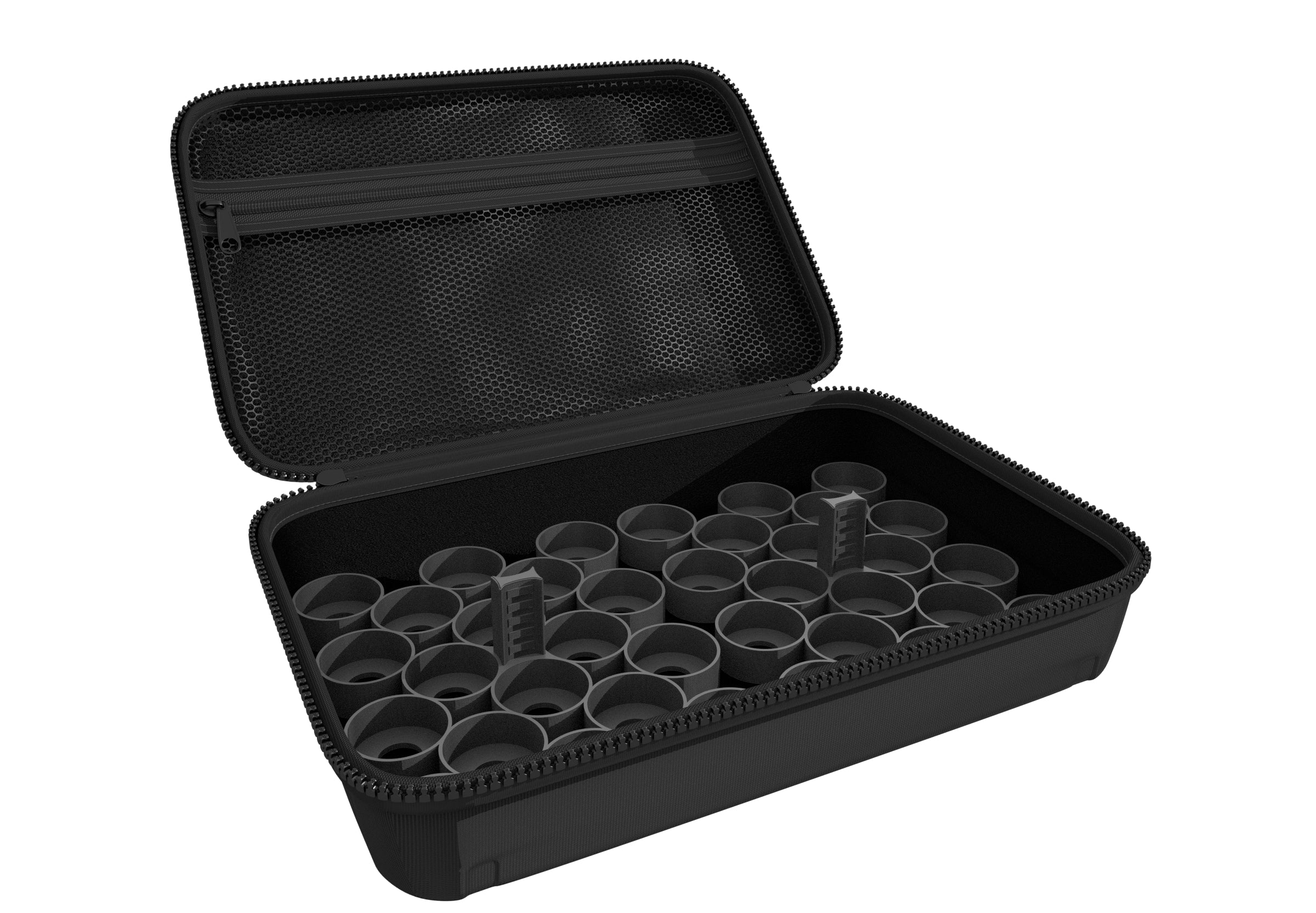 You can neatly store up to 36 Citadel paint pots with 12 ml or 18 ml capacity in the two inserts. You can also accommodate paint pots from other manufacturers with the same dimensions here.