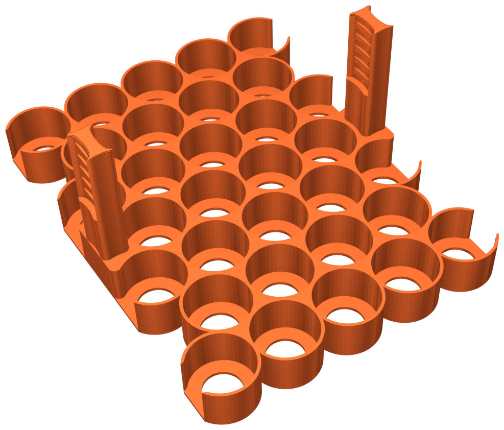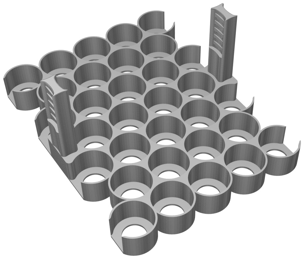 The Feldherr paint holder is ideal for stowing 17 ml model color bottles from Vallejo, 18 ml Warpaint bottles from Army Painter and similar sized paint bottles.