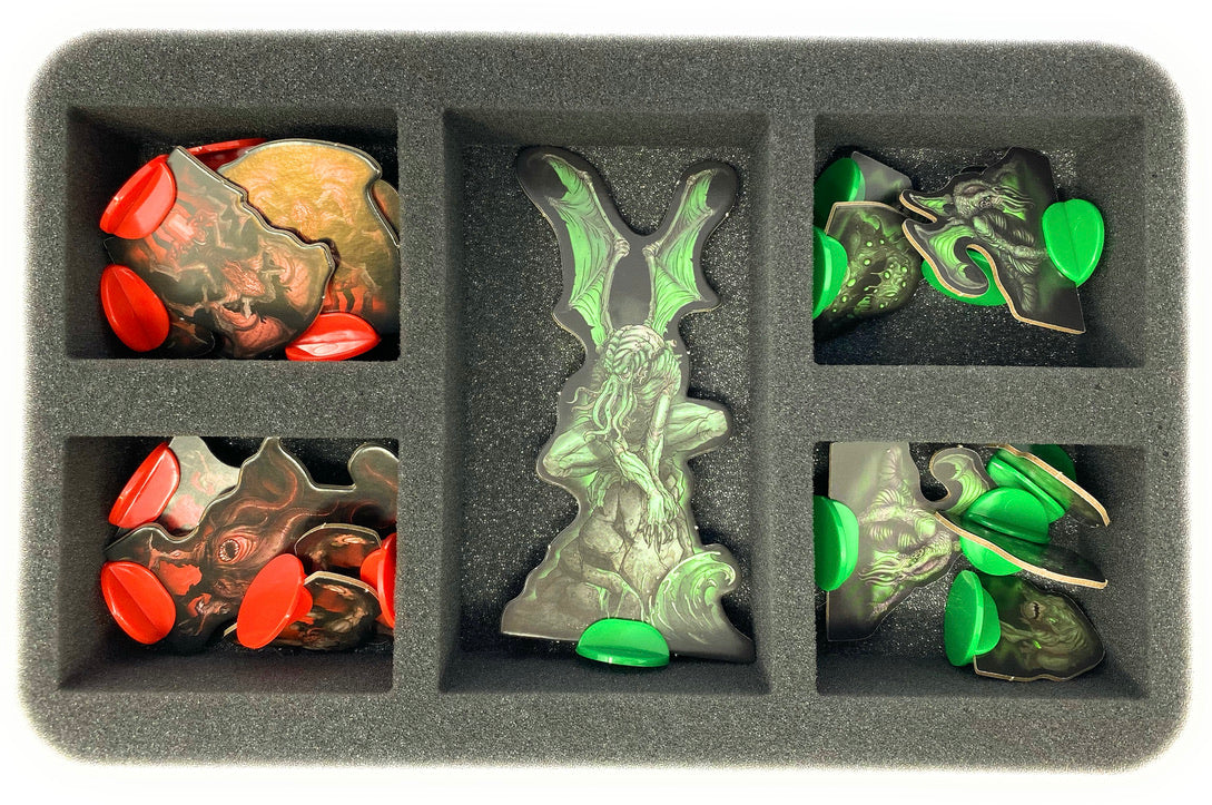 • The compact Storage Box incl. foam inserts offer space for all the game material of the Cthulhu Wars: Duel - core game