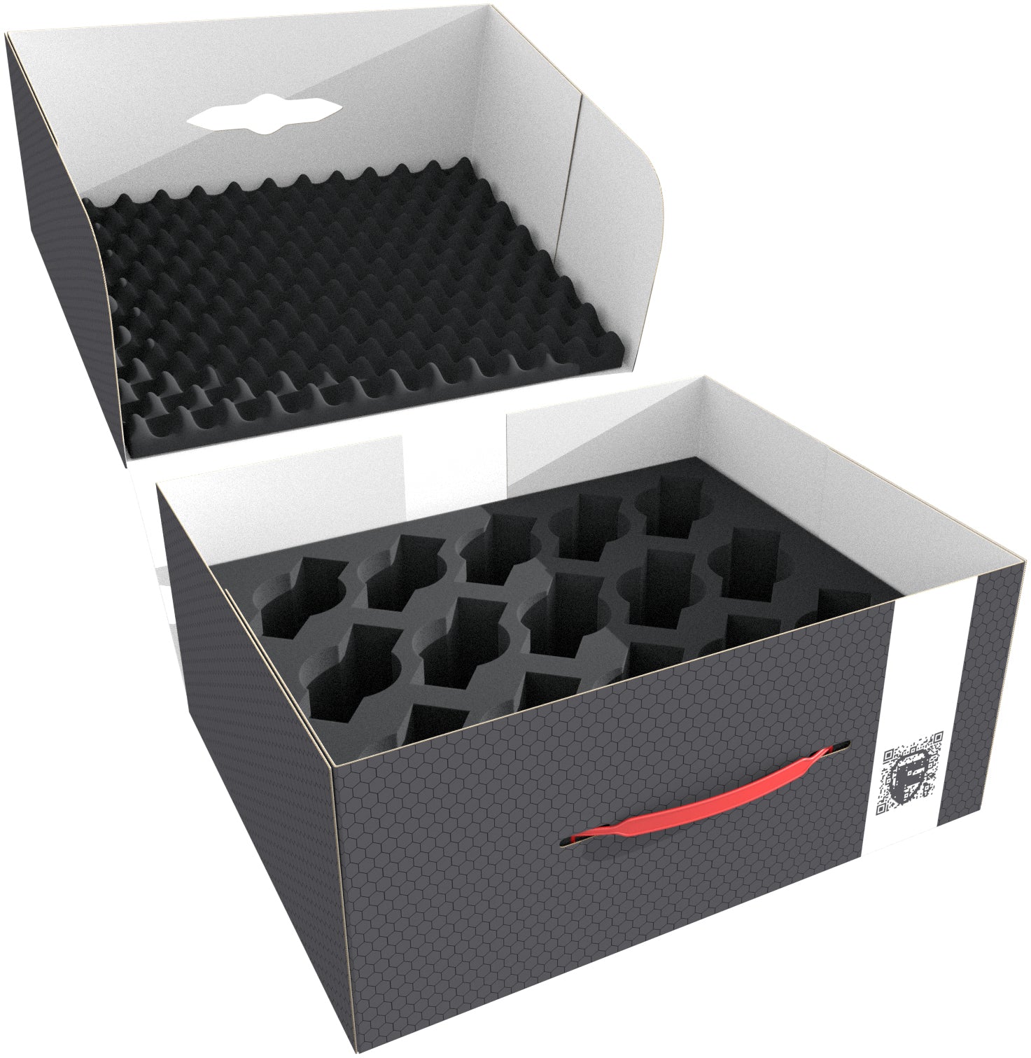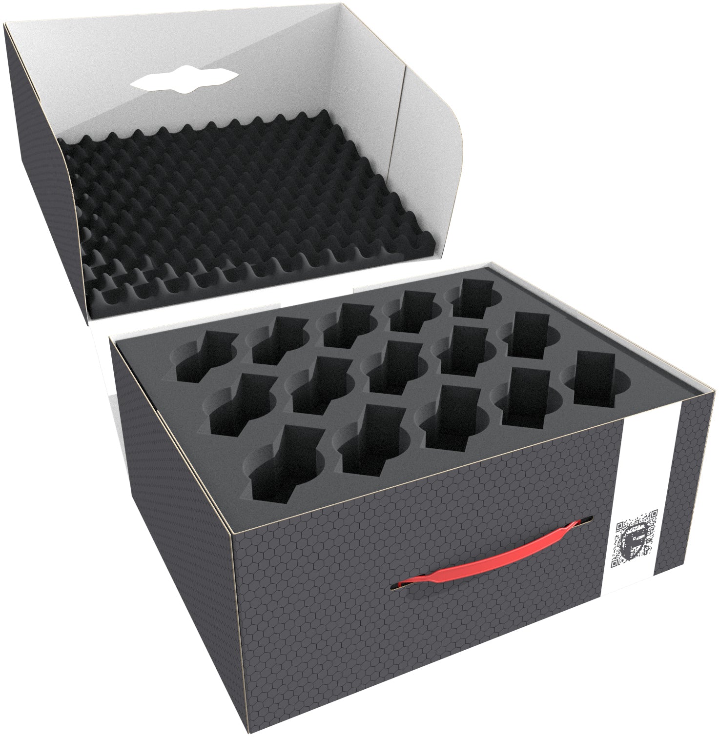 The included convoluted foam topper completes the set. It ensures that your models are protected from all sides. This way, during transport nothing can fall out of the trays.