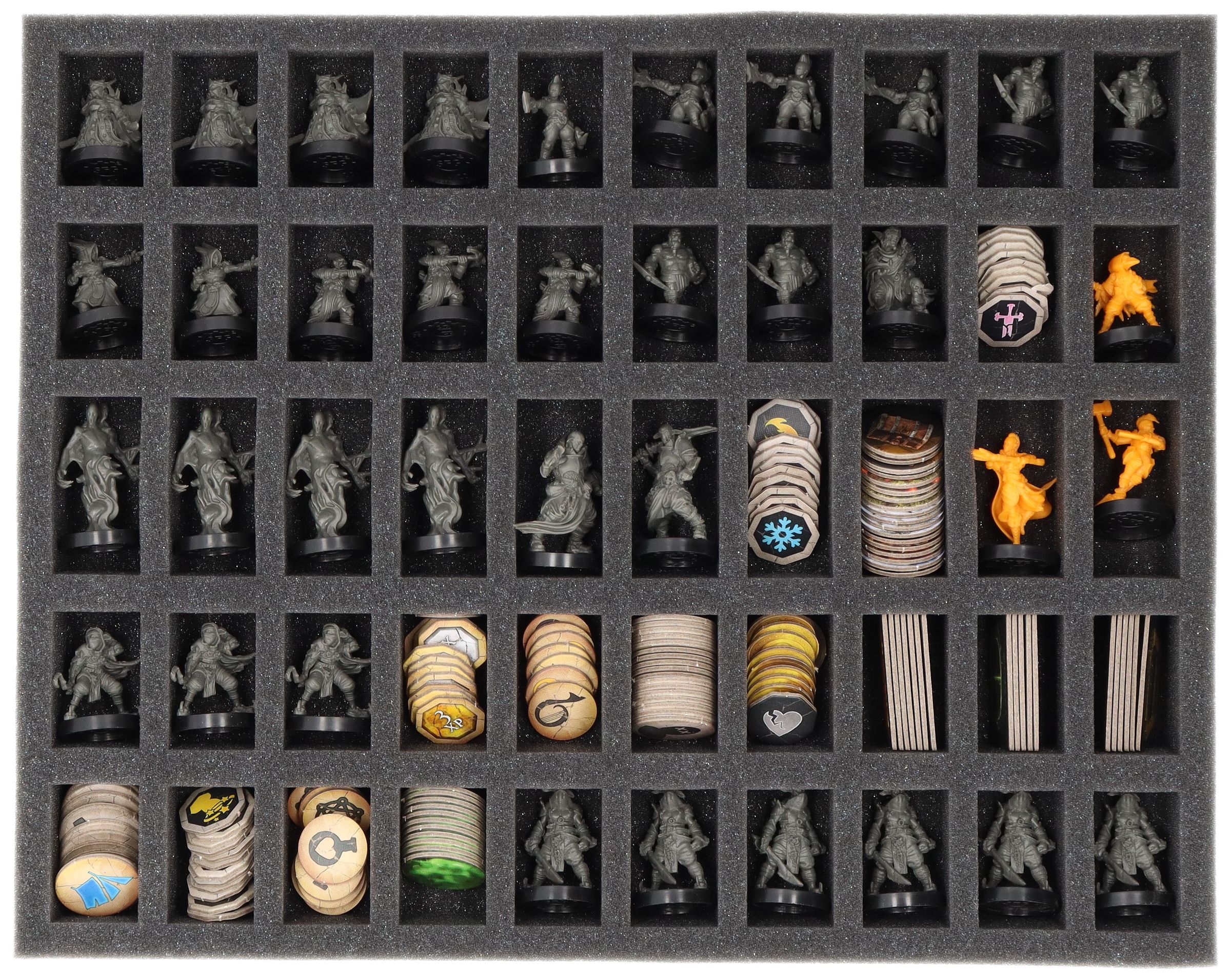- 1 Full-Size foam tray with 50 compartments for miniatures + tokens (FSEB040BO)